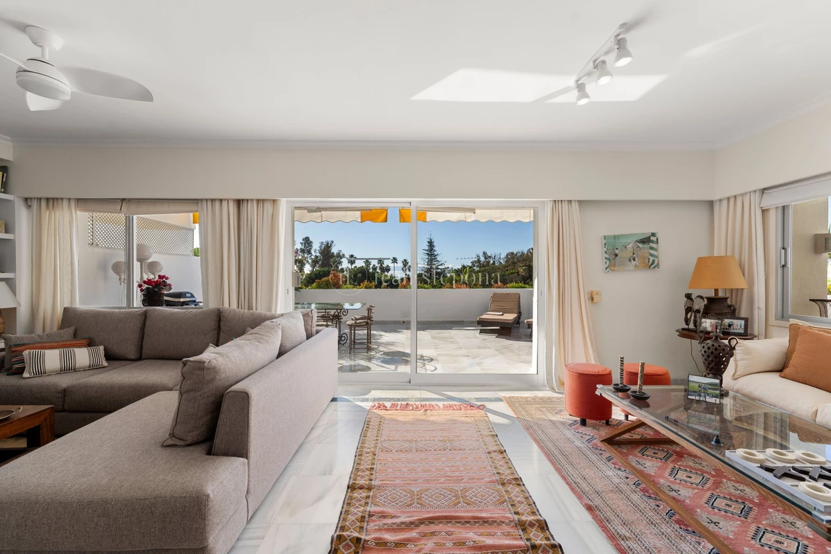Located in one of Marbella’s most prestigious and peaceful areas, this elegant apartment enjoys a prime location just a short walk from the sea.