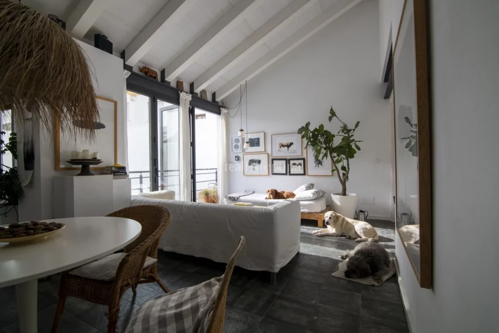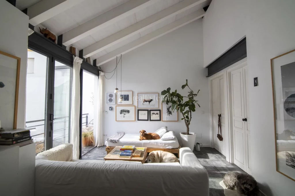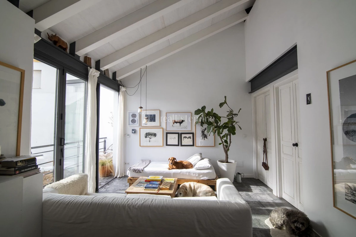 Ground floor: This level features a generously proportioned living space (currently utilized as an art gallery and entertainment area), a large professional-grade fully equipped kitchen, and a guest bathroom. Enjoy direct access to a charming 35m2 patio. The adjacent section of the property (2nd house) includes an additional room and bathroom, with the potential for further expansion by adding another floor above.
