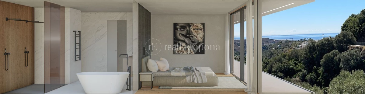 A two-level design villa is located in the natural hillside setting of the Montemayor gated community with 24-hour security. This villa enjoys a privileged high vantage point, providing panoramic views of the sea and the surrounding nature.