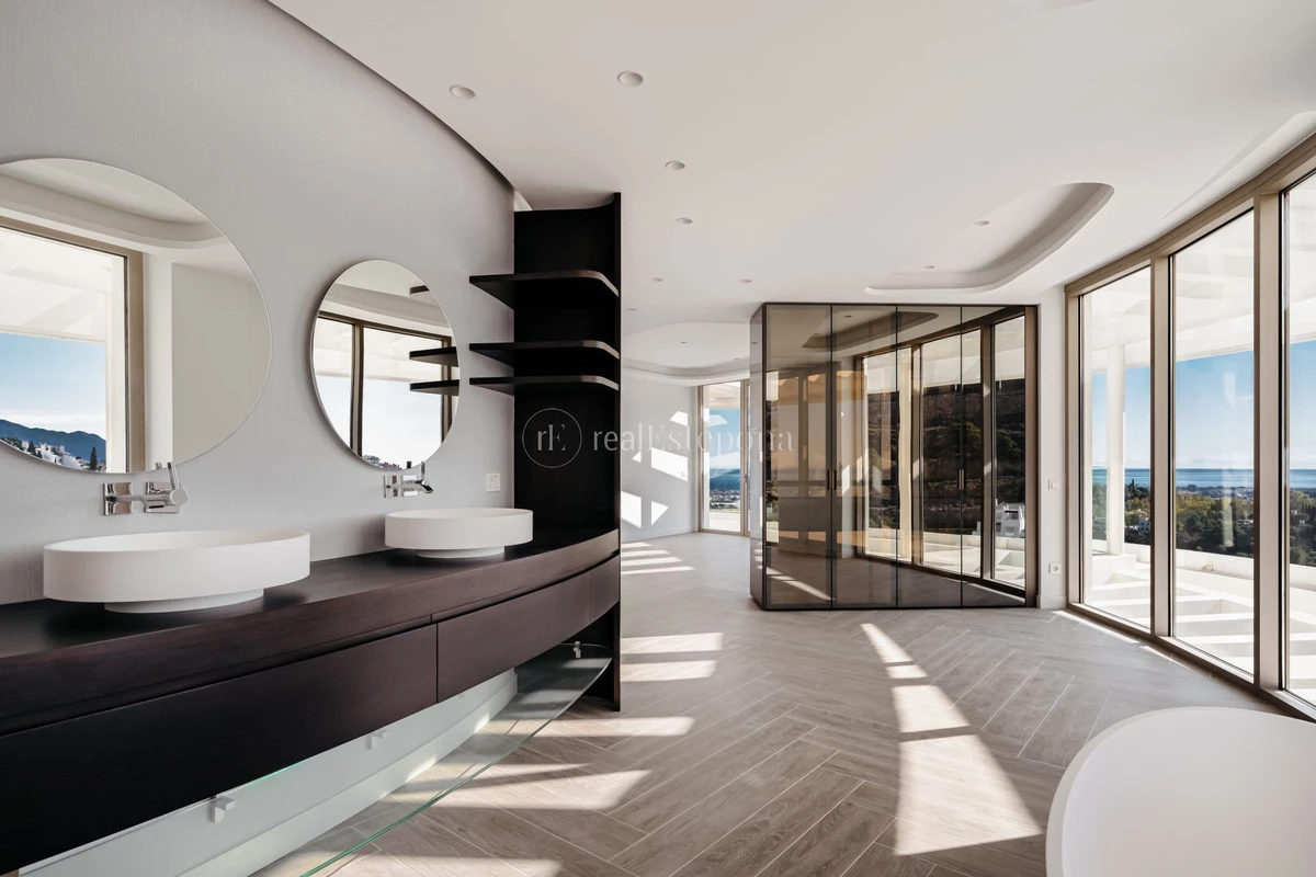 The 595 m² residence features 354 m² of terraces, blending modern design with comfort. It includes air conditioning, solar panels, underfloor heating, and a cutting-edge home automation system. The open-plan layout integrates living areas with floor-to-ceiling windows and direct terrace access, enhancing the breathtaking sea and mountain views. The kitchen is sleek and fully equipped, and each of the three bedrooms has its own en-suite bathroom.