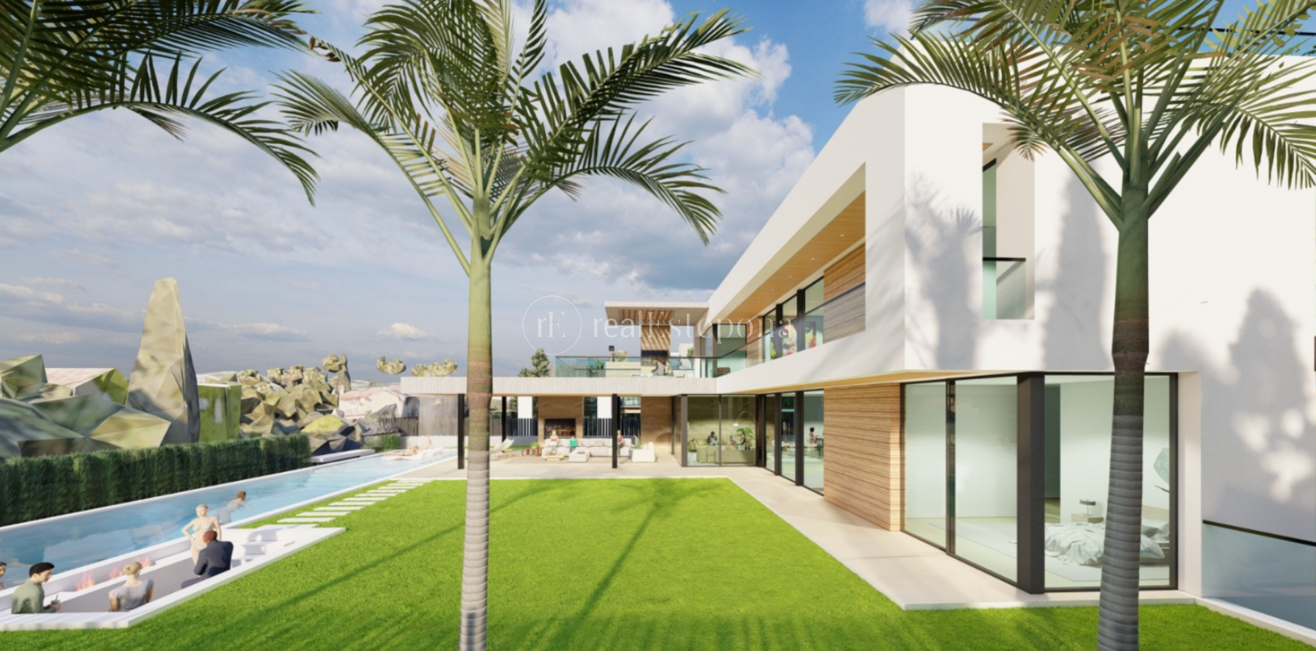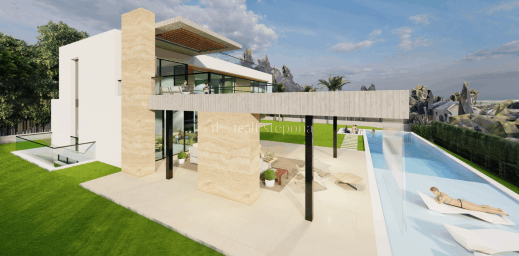 The villa, built to the highest standards, features an open-plan living area, fully fitted kitchen, and dining room. Six ensuite bedrooms on the upper floor provide panoramic views and access to terraces, with a rooftop terrace and a connecting elevator. Additional highlights include an entertainment area, private gym, direct garden and pool access, and a 3-car garage. An exceptional project for discerning buyers.