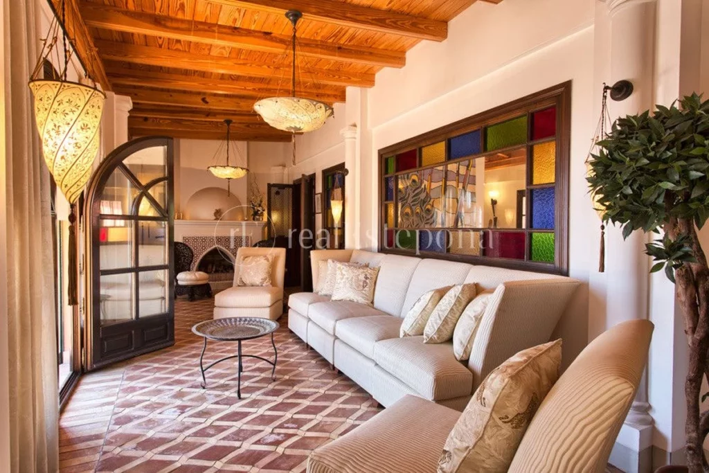 Infusing traditional Andalusian craftsmanship with Arabian influences, this luxurious 7-bedroom villa occupies an expansive plot of 8,083m2, featuring a built-up area of 2,225.23m2 and commanding breathtaking views of its surroundings. Offering secluded terraces, a pool pavilion, and inviting sitting areas, this residence is perfectly suited for hosting guests while maintaining an atmosphere of warmth and comfort.