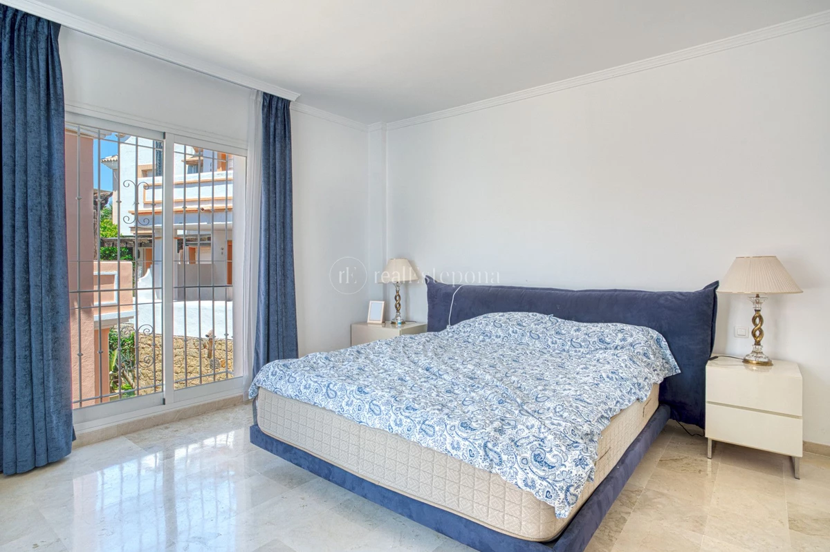 Elegant two bedroom, south west facing townhouse set within an exclusive gated community of just 20 homes, offering a perfect blend of contemporary style and Andalusian charm. Located in the sought-after Aloha area of Nueva Andalucia, it’s within walking distance to the peaceful Turtle Lake and only minutes from Puerto Banus, prestigious golf courses, and all essential amenities. This recently refurbished two-storey home features one guest bedroom and bathroom, large master en-suite, a bright living/dining room with fireplace, air conditioning, and direct access to a private terrace; ideal for enjoying the Mediterranean climate throughout the year. The kitchen is fully renovated and equipped with modern appliances, and a spacious double private garage adds both comfort and security, making it ideal for full-time living or as a second home. The community offers three well maintained swimming pools set in a tranquil environment, while nearby countryside trails and natural surroundings provide a serene lifestyle close to Marbella.