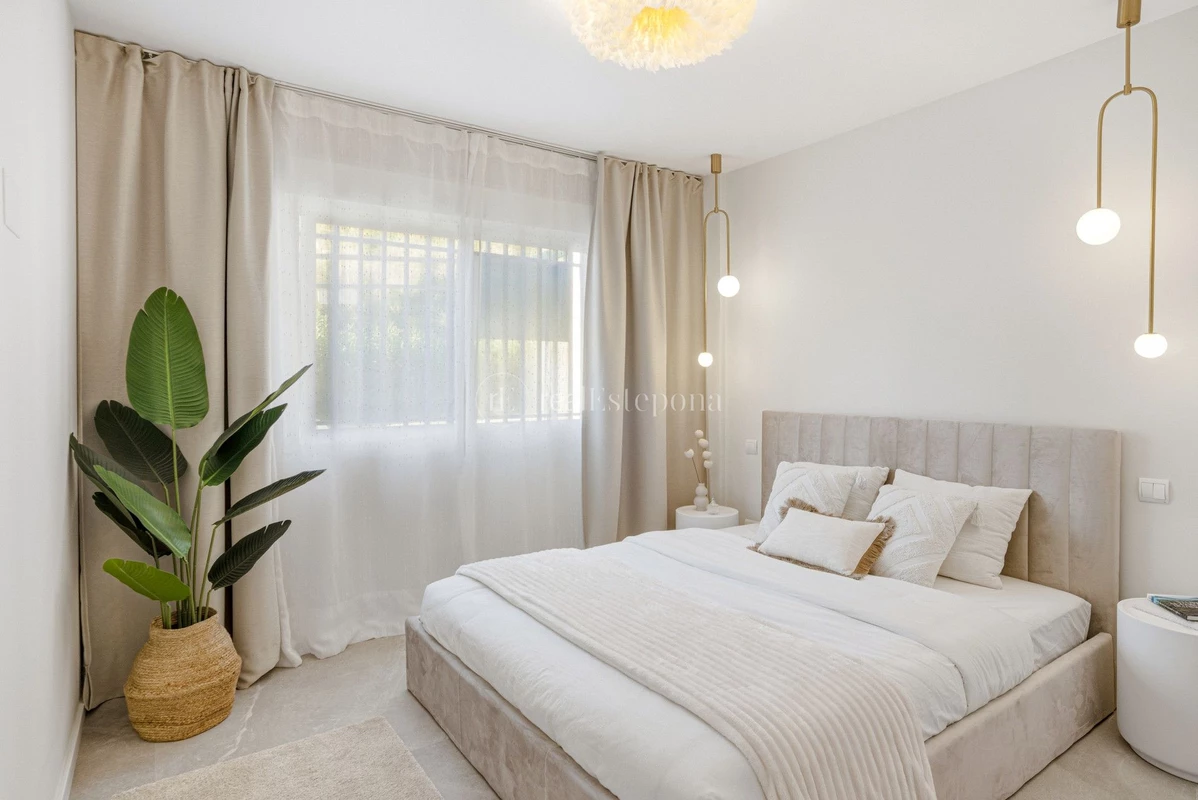 Fully renovated to an exceptional standard, this elevated south-east facing ground-floor apartment in the prestigious La Quinta Golf offers bright, spacious open-plan living and a sleek modern kitchen. The property features three beautifully appointed en-suite bedrooms, a guest toilet, underfloor heating in the bathrooms, double glazing, and a dedicated BBQ area. A large terrace showcases breathtaking lake, golf, sea, and mountain views, creating an idyllic setting for outdoor living. Set within a tranquil residential complex with lush communal gardens, a beautiful swimming pool, and a communal car port, the property is conveniently close to all amenities, within walking distance of the renowned Westin La Quinta Hotel, its 5-star facilities, and the golf course, and just a short drive from the beach. It represents the perfect blend of comfort, style, and prime location.