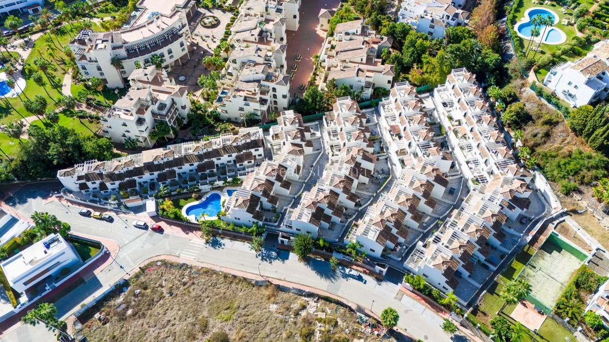 Elegant, three bedroom townhouse located in the gated community of Agra Residencial, a charming Mediterranean-style complex of 47 spacious homes situated beside El Campanario Golf & Country Club, in the heart of Estepona’s prestigious Golden Triangle. Ready to move in, this property showcases bright, open interiors with quality finishes, including ceramic flooring, fitted wardrobes, modern bathrooms with glass shower screens, and a fully furnished kitchen. Designed for comfortable living, it features generous terraces, a private solarium, and a private pool—perfect for enjoying the Costa del Sol lifestyle. Additional highlights include hot and cold air conditioning, two underground parking spaces, and access to beautifully landscaped communal gardens and a swimming pool within this secure, gated community.