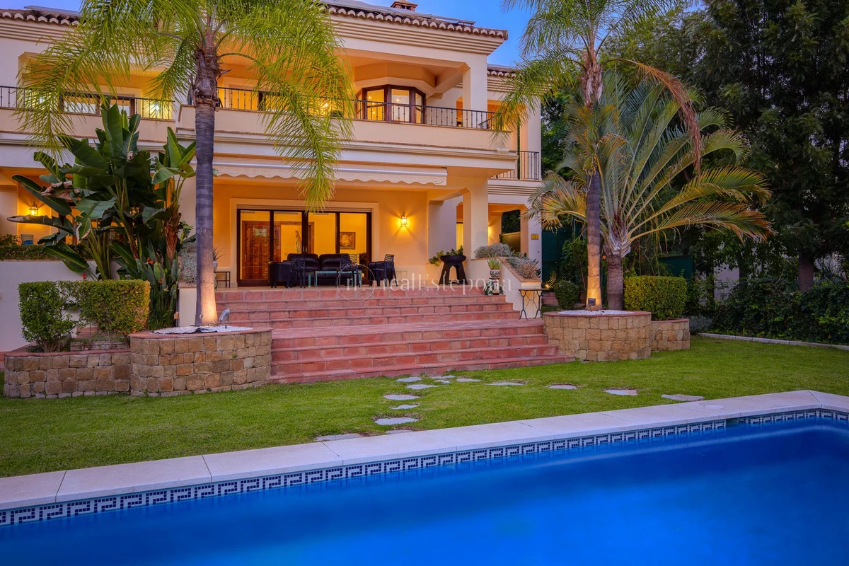 This marvelous villa is located in Los Arqueros urbanization, with 24/7 security. It’s situated between La Quinta, El Madronal, La Zagaleta, and San Pedro Alcántara. In close proximity to the best golf courses in Marbella and Benahavis, the area offers excellent services, restaurants, various international schools, and easy access to the highway.