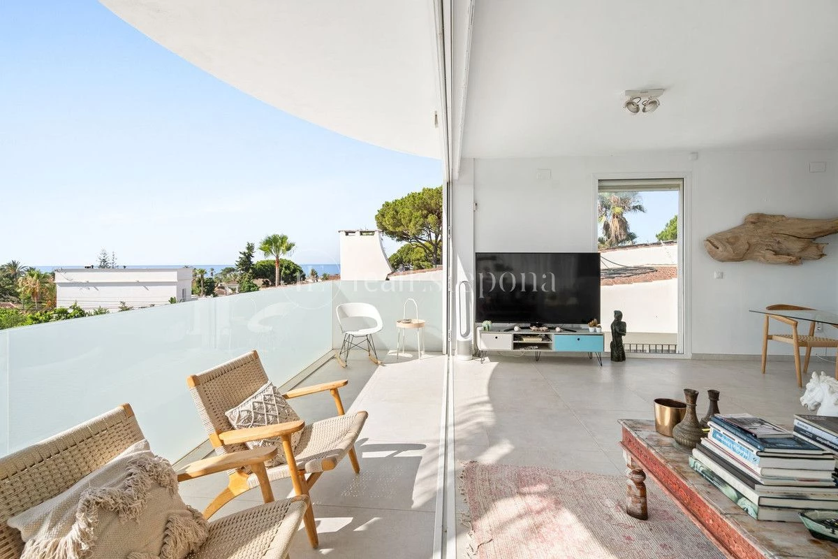 This iconic villa is located in the private urbanization of Marbesa, close to the beach, on the east side of Marbella. It is 400 meters walking distance or 10 minutes walk from the Mediterranean Sea and the beach, 1.5 km from the beach and the protected dunes of Cabopino and 1.9 km from the hotels Marriot and Don Carlos and Nikki Beach Marbella. Marbesa is a quiet and prestigious neighborhoud known for its beautiful coastline and its proximity to Marbella.