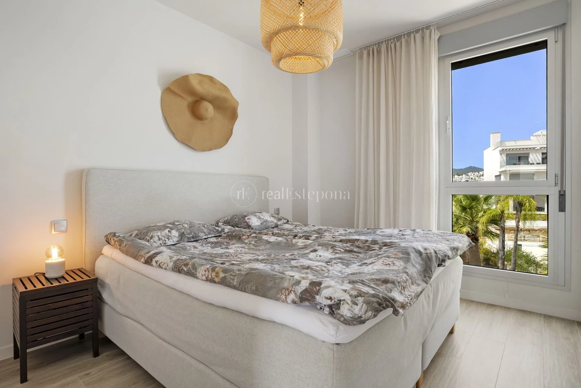 Residents enjoy beautifully landscaped gardens, the largest saltwater pool in the complex, and exclusive access to the Santa Vista Clubhouse, which offers a gym, spa, and on-site restaurant. The property is within walking distance to the charming village of Cancelada, where you’ll find cafés, restaurants, supermarkets, and essential services. The area is surrounded by renowned golf courses, padel clubs, luxury hotels, and wellness centers, with the beach just minutes away. Estepona, Puerto Banús, and Nueva Andalucía are all less than a ten-minute drive.