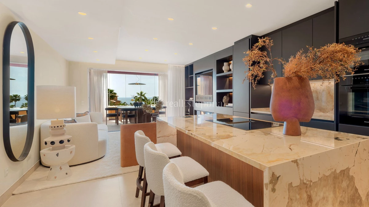 In the prestigious beachfront enclave of Los Granados del Mar, this elegant 3-bedroom, 2-bathroom apartment offers a rare opportunity to experience one of Estepona’s most exclusive coastal lifestyles. Set within a gated, frontline beach community celebrated for its beautifully landscaped gardens, sophisticated architecture, and exceptional wellness facilities, the residence combines comfort, tranquillity, and understated luxury in one of the Costa del Sol’s most sought-after addresses.