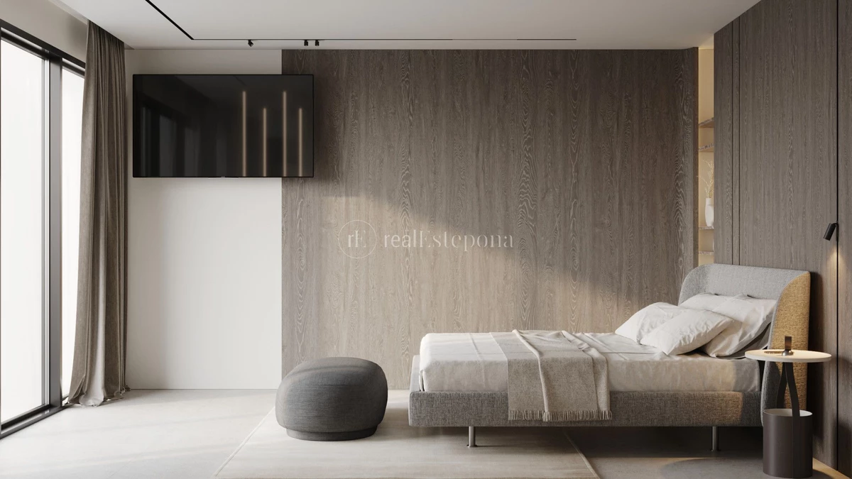 This newly built contemporary villa in Cortijo Blanco, San Pedro features clean lines, open spaces, and high-quality materials. Set on a 1.151 m² plot, the property includes 877 m² of interior space and 273 m² of terraces, designed for seamless indoor-outdoor living.