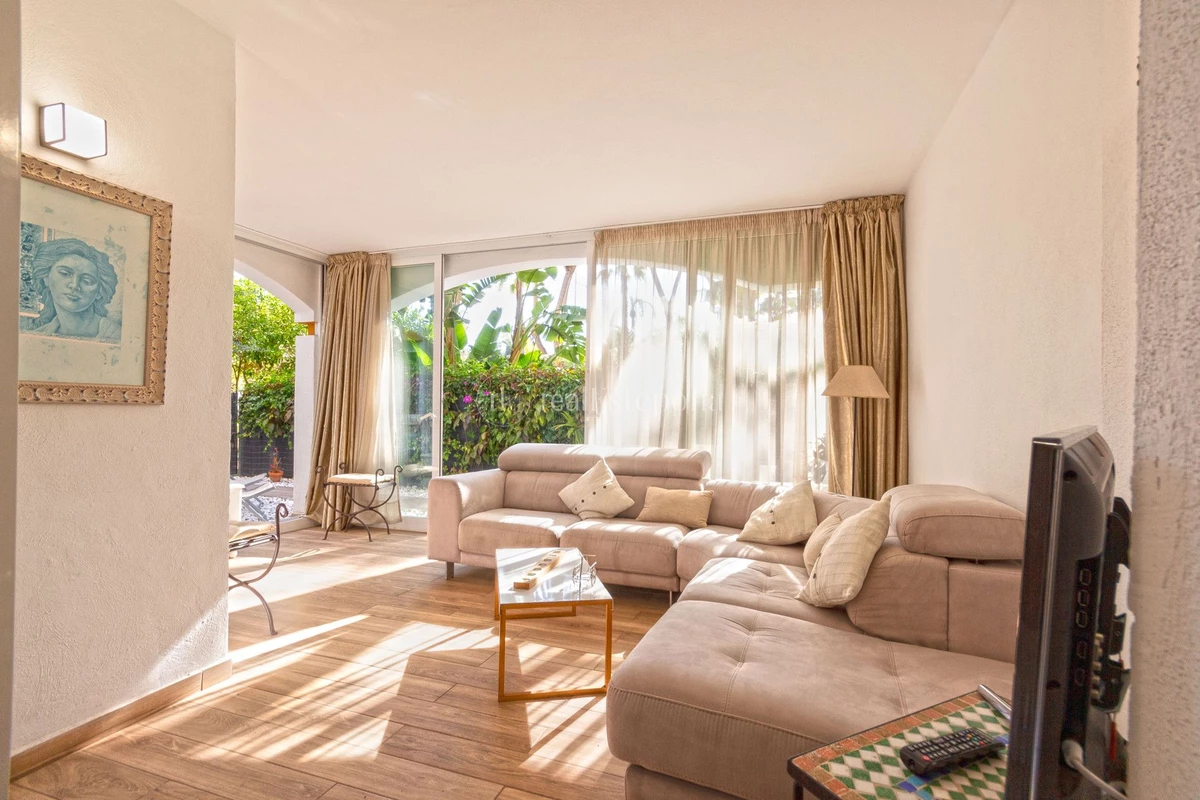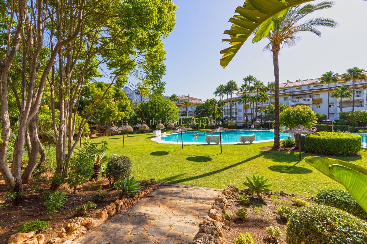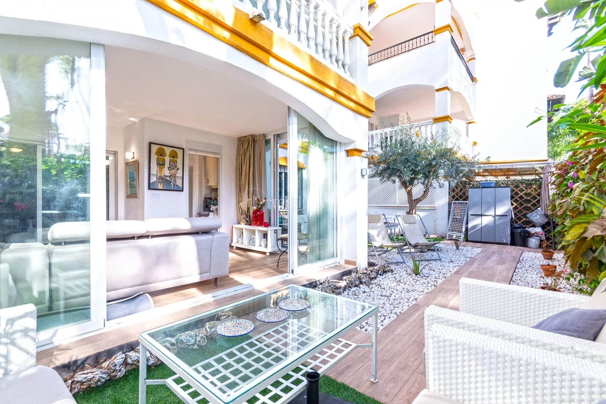 Ground floor apartment for rent with private garden in La Dama de Noche development, Nueva Andalucía Marbella.