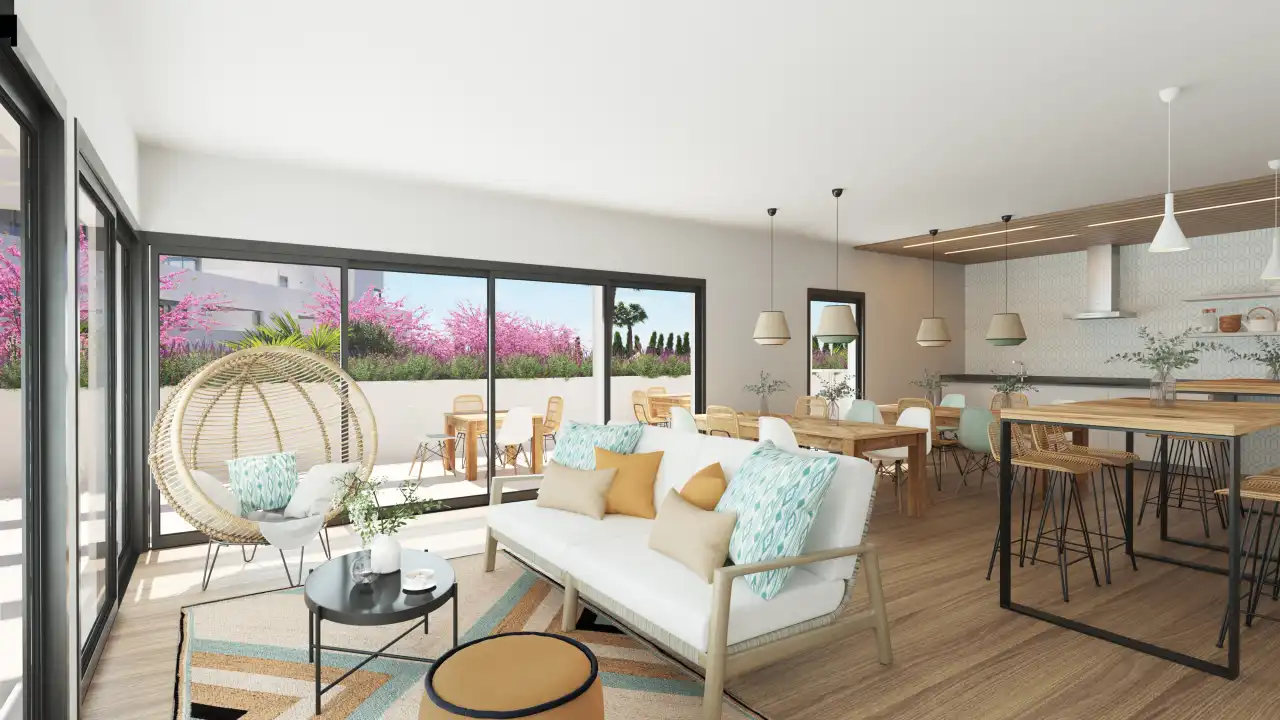 In the New Golden Mile, the coastal area between Estepona and San Pedro de Alcántara, this project offers contemporary-style apartments and penthouses in a location close to all types of services, such as educational centers, supermarkets, shops, restaurants, sports areas, and entertainment options. It is just a few minutes from Puerto Banús, Benahavís, and Estepona, near the beach and numerous golf courses.