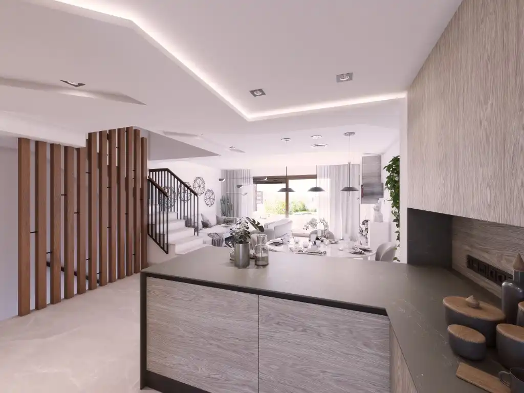New project on the slopes of La Concha in Istán, Marbella. Set in an area of natural beauty with century old forests and panoramic views of both Marbella and the Istán reservoir. Within the project will be seven small residential complexes consisting of apartments, penthouses and semi-detached townhouses. This is the second project to go on sale, and this one consists of just 23 semi-detached townhouses offering amazing panoramic views towards Marbella and Gibraltar. These properties are at the highest part of the development and therefore offer the best views, unrestricted views of Marbella and Gibraltar. The homes are designed in contemporary open-plan layout but with an appearance that blends into the natural surroundings. These lovely townhosues are delivered to you fully equipped with high-end finishings, ready for you to move in. Each of these three-bedroom townhouses is distributed over four floor, starting with a sizeable basement/garage. On the ground floor you will find your spacious open-plan living area/kitchen and dining area, with access to a generous terrace area.