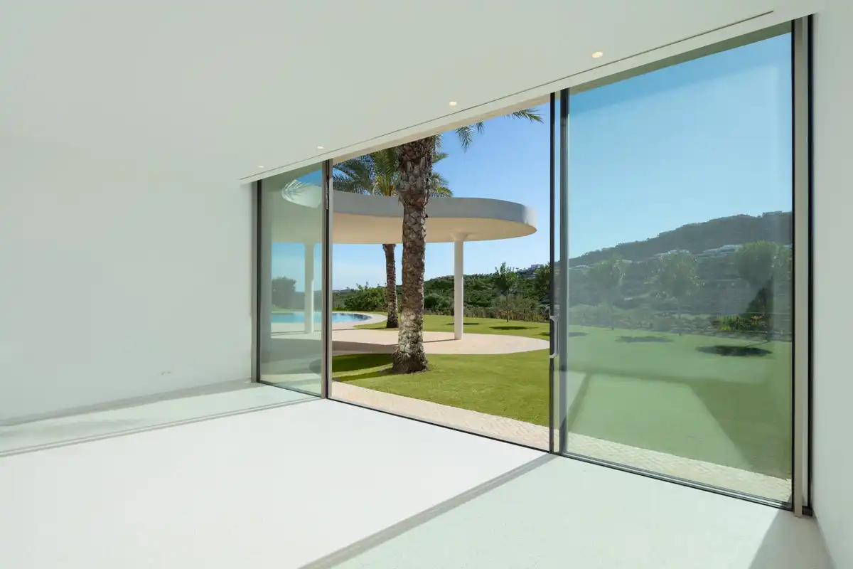 This prestigious villa stands as a testament to architectural ingenuity, capturing the essence of uniqueness and sophistication. Designed by the visionary minds of Vicens & Ramos architects, its futuristic yet nostalgic structure commands attention with its flowing lines and harmonious integration within the lush green surroundings. The villa harmoniously coexists with nature, enveloped by a tapestry of vibrant greenery. The ground floor accommodates all living spaces, while the upper level features a captivating dome-like entrance and a bespoke spiral staircase, evoking a sense of grandeur. The entrance, thoughtfully designed for parking convenience, sets the stage for welcoming guests and making a lasting impression. An outdoor spiral staircase grants direct access to the garden from the entry level. The ground floor encompasses a fully-equipped kitchen, generous living and dining areas and four stunning bedrooms, each offering their own unique charm. With an abundance of windows and glass sliding doors, natural light floods the interior, seamlessly connecting it to the outdoors. The villa boasts a captivating garden, highlighted by an egg-shaped pool adorned with tranquil light blue tiles. Towering palm trees grace the landscape, while the verdant grass provides ample space for leisure and social gatherings. The terrace tiles, specially chosen for this property, add yet another bespoke touch to the villa’s distinctive character. Offering an unparalleled architectural masterpiece, this exceptional villa promises an extraordinary personal retreat, complemented by breathtaking views and an enviable location within the esteemed Finca Cortesin Resort.