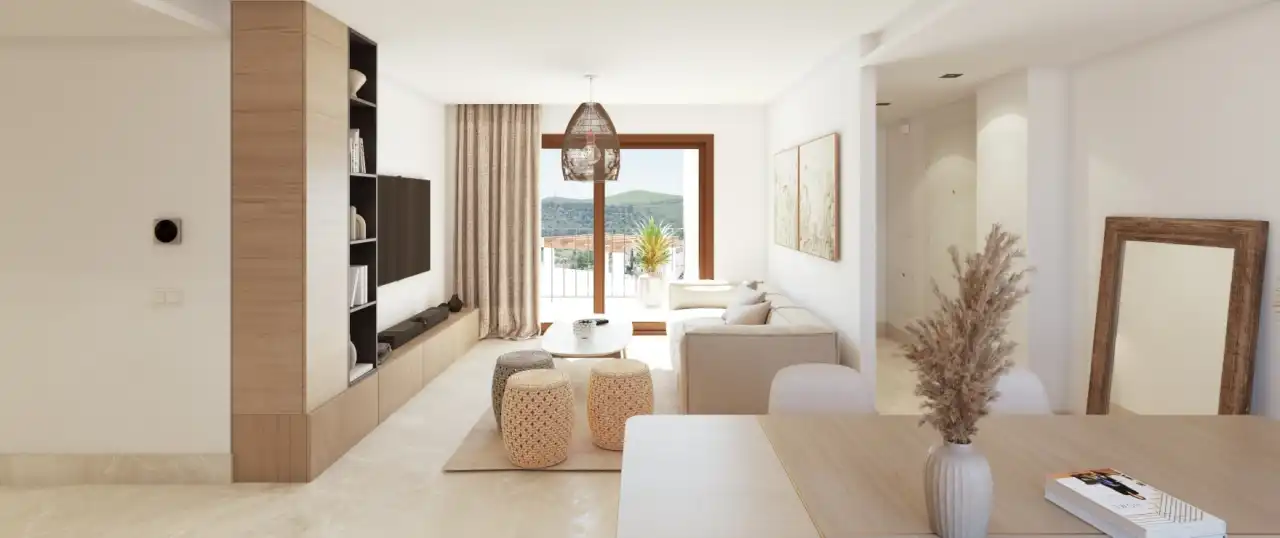 This inviting 2-bedroom, 2-bathroom apartment for sale in Benahavís promises a serene lifestyle amidst the beauty of the Andalusian landscape. With a built area of 87 m² and a delightful 11 m² terrace, this property offers ample space to enjoy the Spanish sun. Positioned at the heart of Benahavís, it’s the perfect retreat for those looking to buy a home in this charming village.Apartment features in BenahavísLocated on a desirable floor, this apartment boasts a well-designed layout that maximizes space and comfort. The private 11 m² terrace is ideal for alfresco dining or relaxing with a good book while soaking up the views of the surrounding landscape. The apartment’s orientation ensures plenty of natural light throughout the day, creating a warm and inviting atmosphere.Luxury amenities at this Benahavís apartment for saleResidents of this community enjoy exclusive access to a communal rooftop pool, perfect for cooling off during the warm summer months. Each apartment includes a private underground parking space that is pre-installed for electric vehicle charging. Situated near the stunning Serranía de Ronda mountains and the Guadalmina River, this location offers an authentic Andalusian lifestyle with the convenience of modern amenities close by.Spacious 2-bedroom apartment interiorThe apartment’s 87 m² built area is thoughtfully utilized to provide a comfortable living experience. The interior features contemporary design elements and high-end finishes, ensuring a stylish and functional living space. The property includes a garage space for added convenience and security.Living in Benahavís – apartments for saleBenahavís offers a unique blend of tranquility and accessibility, making it an ideal place for those looking to buy a home in the region. Just a short drive away are the vibrant locales of San Pedro de Alcántara and Puerto Banús. Estepona, with its charming flower-filled streets and beautiful old town, is also within easy reach. The area is a golfer’s paradise, with some of the Costa del Sol’s best golf courses just minutes away. Additionally, the sandy beaches and bustling nightlife of Marbella are conveniently close, while Malaga airport is easily accessible for international travel.