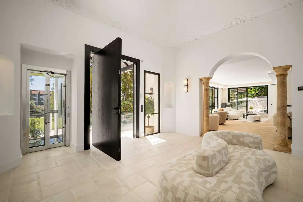 Discover an exceptional villa for sale situated in the heart of La Quinta, Benahavís. This remarkable property offers a perfect blend of architectural elegance and modern functionality. With 5 bedrooms and 5 bathrooms, the villa is designed to provide both comfort and luxury. The property features stunning views over the fairways, making it an ideal choice for those looking to buy a prestigious residence in a gated community.Villa features in BenahavísThis villa is located on a frontline golf plot, offering direct views of the rolling greens. The seamless transition between indoor and outdoor spaces is achieved through wide sliding glass doors that open onto pristine terraces. A 37 m² outdoor terrace provides ample space for relaxation, while a small kitchenette with a barbecue enhances the outdoor living experience.Luxury amenities at this Benahavís villa for saleResidents can enjoy a variety of luxury amenities within the gated community of El Herrojo. The villa boasts a private outdoor swimming pool and a well-equipped gymnasium for fitness enthusiasts. The beautifully landscaped courtyard offers a tranquil space for relaxation. Additionally, the property includes a spacious garage for 3 cars, ensuring ample parking and storage space.Spacious 5-bedroom villa interiorThe villa offers a generous 492 m² built area with a 474 m² useful area. The open-plan layout features two elegant living rooms, providing versatile spaces for entertaining or unwinding. The kitchen and dining areas are adorned with natural wood and equipped with top-quality appliances, seamlessly blending style with functionality. The master suite is a true retreat, featuring an exquisite dressing room and a luxurious bathroom with double sinks, a separate bathtub, and a shower.Living in Benahavís – villas for saleLocated in the picturesque region of Benahavís, this villa offers access to some of the finest golf courses in the Costa del Sol. The vibrant town of Marbella is just a short drive away, boasting a plethora of dining and shopping options. The charming flower-filled streets of Estepona, with its authentic Andalusian atmosphere, are also within easy reach. The villa’s location provides convenient access to Malaga airport, ensuring smooth travel connections.