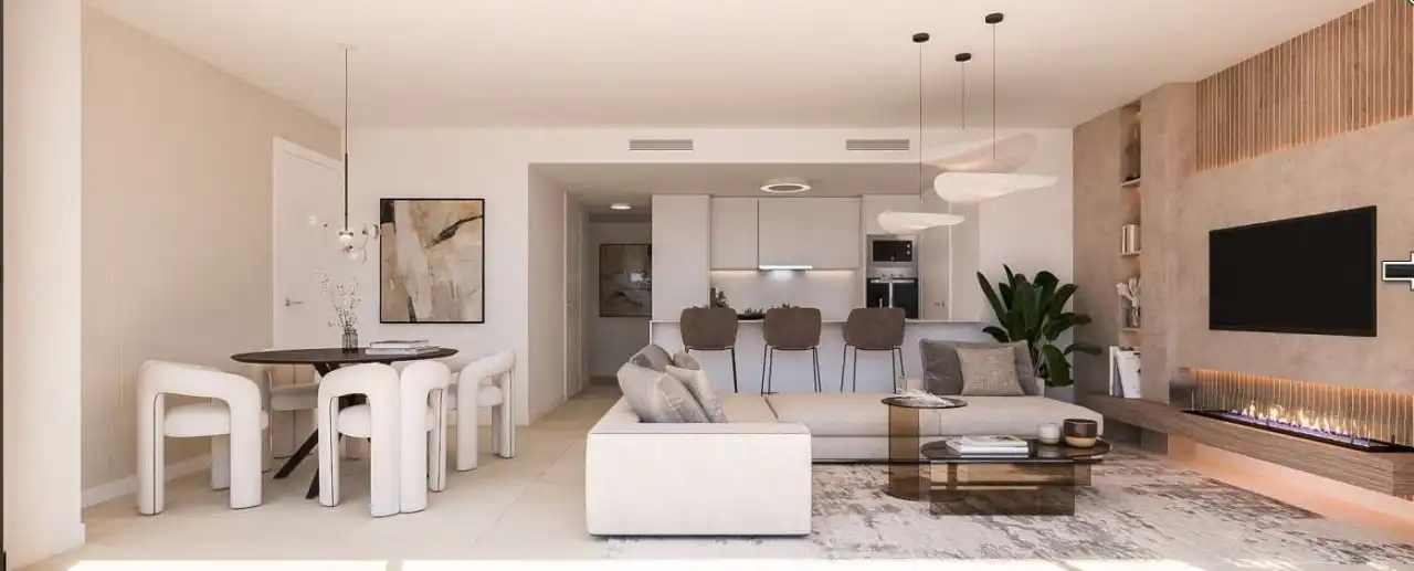 This remarkable 4-bedroom, 3-bathroom apartment for sale in Estepona offers a unique blend of modern living and Mediterranean charm. Located on the second floor, this property boasts a generous 278 m² built area with a spacious 69 m² solarium ideal for enjoying the Spanish sun. Situated in the prestigious Arroyo Enmedio area, this apartment promises a lifestyle of comfort and exclusivity.Apartment features in EsteponaThe second-floor apartment is thoughtfully designed to maximize space and light. It includes a 21 m² indoor terrace and a 20 m² outdoor terrace, offering ample room for relaxation and entertainment. The property’s orientation ensures plenty of natural light throughout the day, creating a warm and inviting atmosphere for residents.Luxury amenities at this Estepona apartment for saleResidents of this exclusive residential complex enjoy access to an array of luxury amenities. Immerse yourself in wellness with a dedicated spa featuring a Turkish bath, jacuzzi, and sauna. Stay active in the fully equipped indoor gym, or unwind in the modern coworking and multimedia spaces. The complex also features stunning swimming pools surrounded by lush gardens, providing a resort-like experience in the heart of Estepona.Spacious 4-bedroom apartment interiorThe apartment’s 167 m² useful area is expertly laid out to provide a comfortable living environment. It includes a well-designed room layout, ample storage room, and two garage spaces. Every detail has been considered to ensure functionality and style, making it an ideal choice for families or those seeking a spacious living space.Living in Estepona – apartments for saleEstepona is renowned for its vibrant lifestyle, offering a perfect balance of relaxation and activity. Discover the charming flower-filled streets of Estepona’s old town, or enjoy the nearby beaches and numerous golf courses. With excellent connections to Marbella, Gibraltar, and Malaga airport, Estepona is an ideal base for exploring the Costa del Sol. This apartment’s proximity to local amenities, schools, and shopping centers ensures a convenient and fulfilling lifestyle.