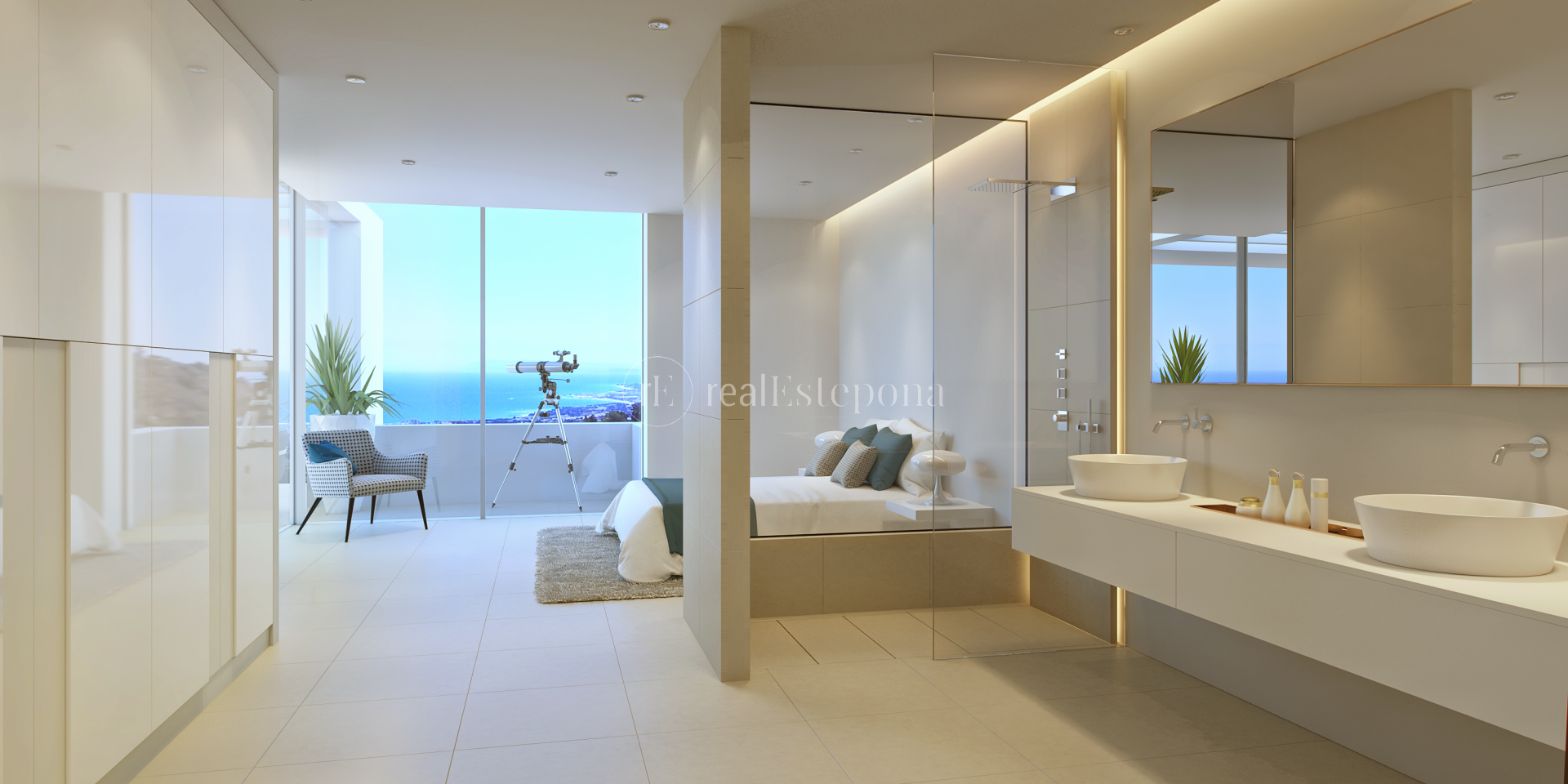 As you step into the penthouse, you’ll be greeted by a spacious open-plan living and dining area that creates a warm and inviting atmosphere. The floor-to-ceiling windows allow natural light to flood the space, enhancing the overall ambiance and offering breathtaking views of the Mediterranean Sea and Sierra de las Nieves mountain range.