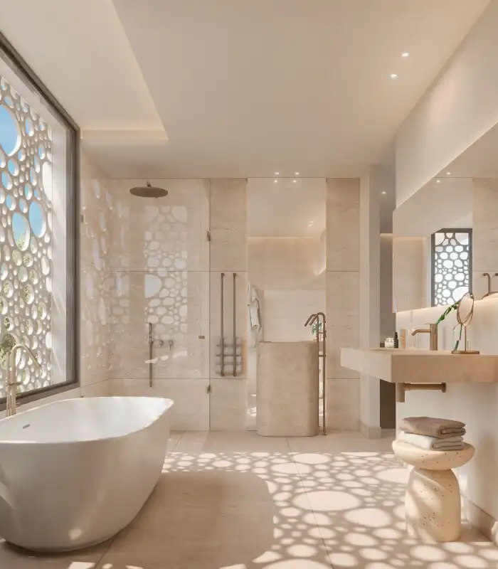 Designed to adapt to a modern lifestyle, this villa will feature five bedrooms, four bathrooms, and two half bathrooms. The spacious open-plan living and dining spaces integrate seamlessly with the outdoor terraces, creating a seamless experience between the interior and exterior.