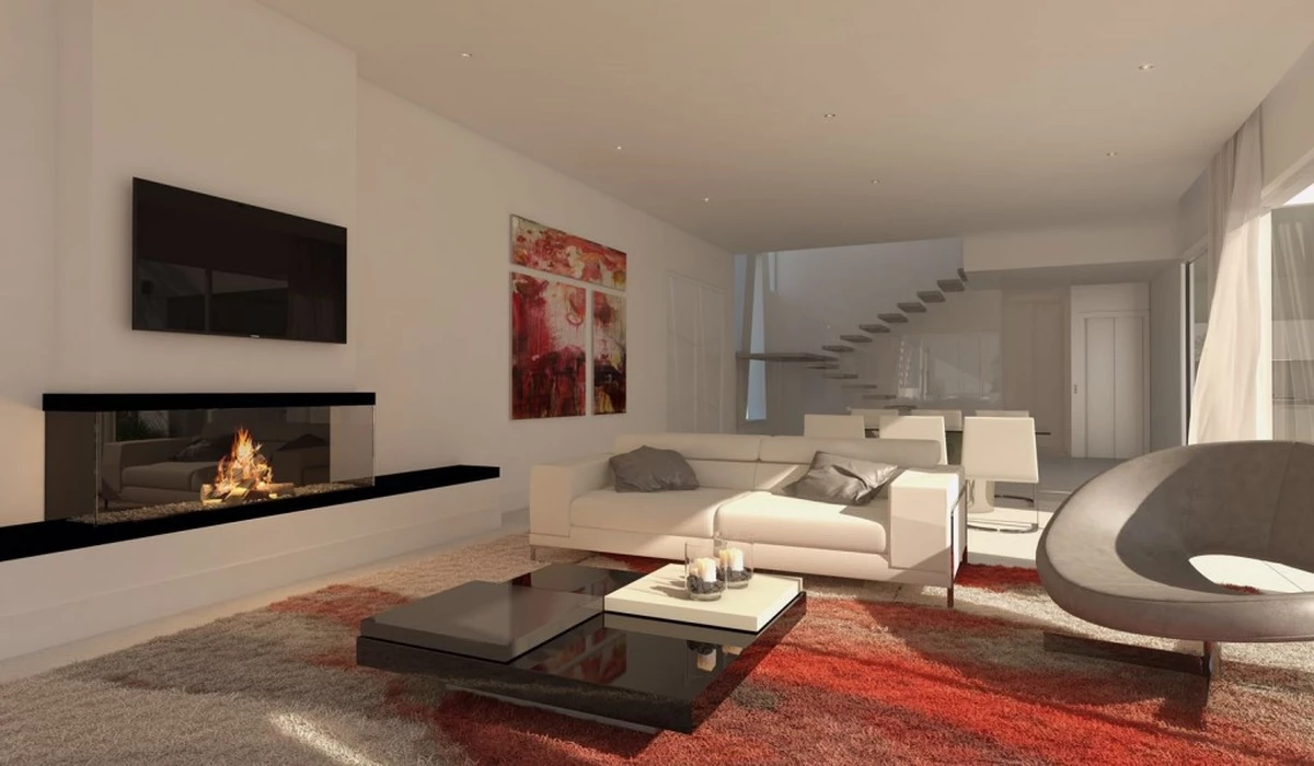 From the main floor through a spacious, modern cantilevered staircase leads to the upper floor where is the master bedroom with dressing room and en -suite bathroom and private terrace and two more bedrooms with bathrooms en -suite.