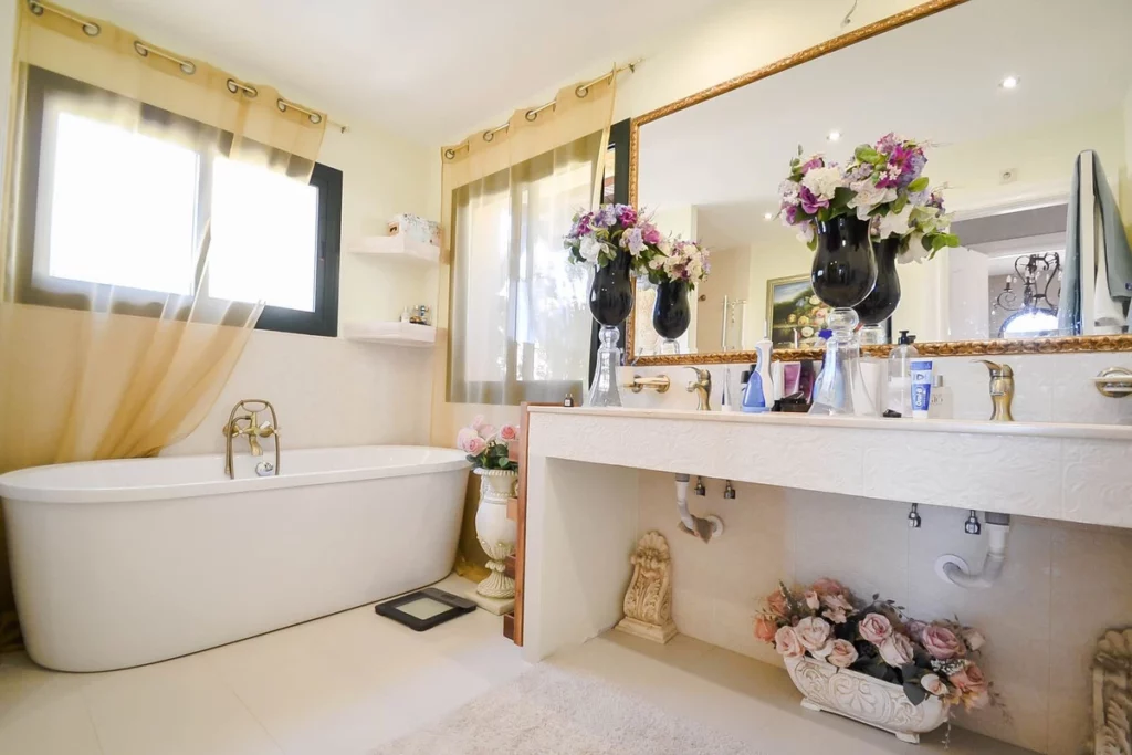 On the first floor we have a living / dining room with access to a magnificent terrace with views of the mountains and community gardens. On the same floor we find 2 bedrooms, each with its own bathroom and separate kitchen. On the second floor we have a master bedroom suite and dressing room, with access to a large terrace with its added advantages such as a kitchen with barbecue and Jacuzzi and panoramic views. Completely renovated apartment (kitchen, new air conditioning installations, windows, bathrooms and etc)
