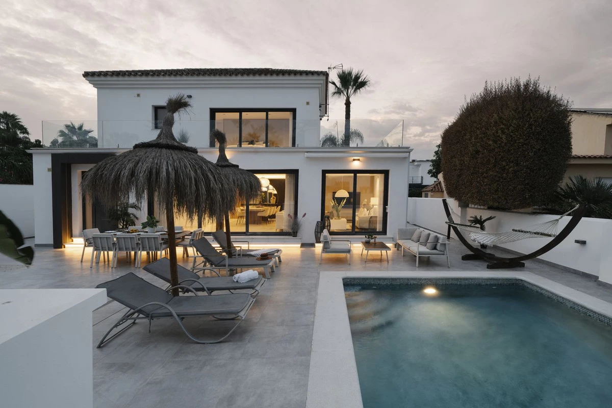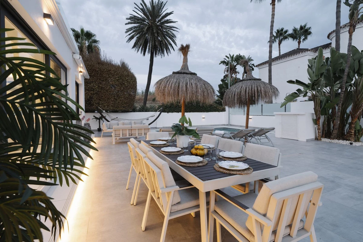 Discover this stunning 4-bedroom, 3-bathroom villa in the heart of Nueva Andalucía, just a short stroll from Puerto Banús and top-tier restaurants like La Sala, Breathe, and Occo. Nestled on a spacious 800 m² plot, this beautifully designed home offers the perfect blend of luxury, comfort, and investment potential.