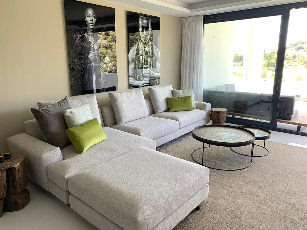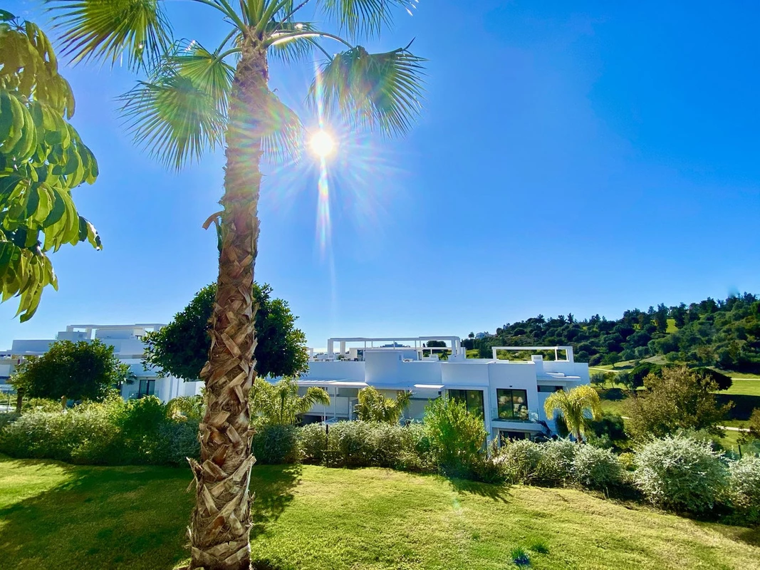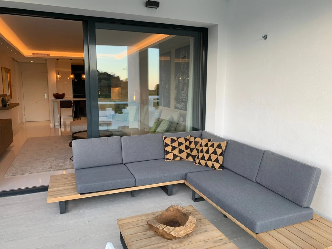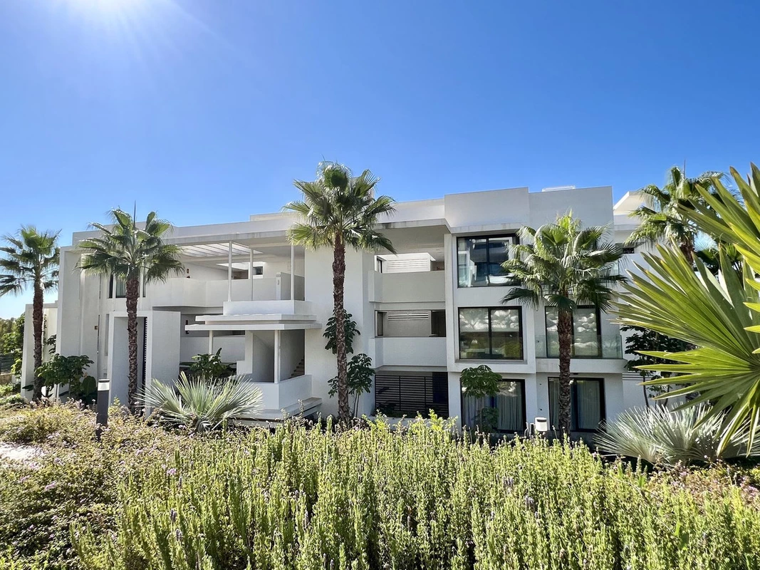 5* Luxury and contemporary middle floor apartment. The avant-garde architecture is designed by the famous architects Villarroel – Torrico @ Puente Romano Marbella. The setting is unique and just in front of Atalaya Golf ( 36 holes ) with unobstructed panoramic south orientated views, overlooking the golf courses, garden and parties sea view. Atalaya driving range is literally at your doorstep. The quiet and front golf location is unbeatable. Situated at the end of a cull the sack ( Atalaya Golf course and driving range ) between all-new luxury contemporary villa's in the exclusive secured urbanisation of La Alqueria – Benahavis, 6 minutes to Puerto Banus, 10 minutes to Marbella, 12 minutes to Estepona, 2 minutes to a very nice "Mercadona" supermarket and International School & College.