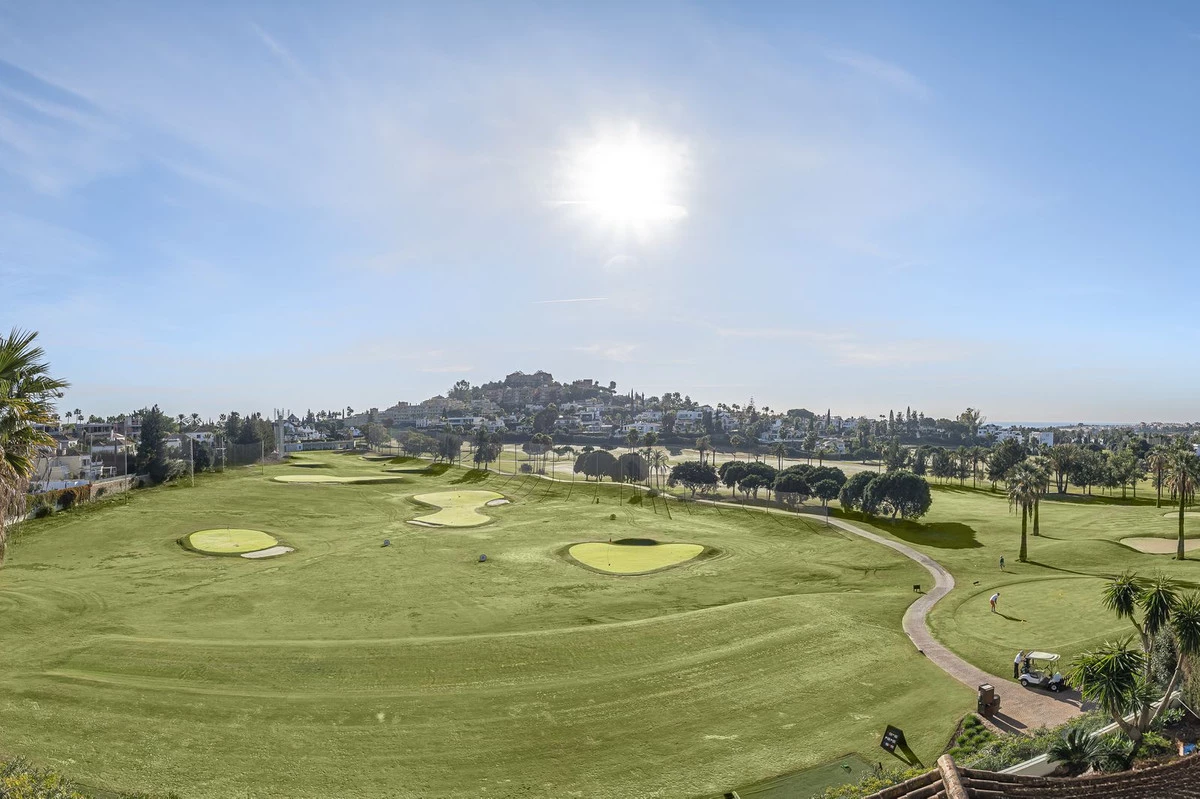 This magnificent villa located in the heart of the prestigious Golf Valley of Nueva Andalucia! This impressive property boasts of an expansive 1.425m2 of plot size and located first line golf. Entering the property, a huge driveway welcomes you to the well-maintained expansive garden area. This recently reformed villa has is divided into 4 floors plus attic, 7 bedrooms, 7 bathrooms, gust toilet, several living rooms and lounge areas, terraces and entertainment area. Upon entering this stunning villa, you will be greeted by a bright hallway with a high ceiling and access to the different areas of the main floor. To the right is a bedroom with ensuite bathroom which could also be an private office.On the left part, you will find a charming independent kitchen fully equipped with high quality appliances. Also, on the main floor you will find the dining area, a separate lounge area and a very chic sitting area with direct access to the terrace. Enjoy the best golf views on the large terrace with different spaces to have your meals or just relax and enjoy the sun and the fantastic views. Going up on the second floor, you will find two grand master bedrooms both with ensuite bathrooms (with bath and shower), both with access to the bright terrace. On the upper floor, you will find a spacious studio which could be used as an office, art studio, another bedroom etc. Going down to the lower floor, you will find, a spacious entertainment room with a cinema, bar, game area; 3 complete bedrooms and 3 bathrooms, a spacious living area-dining room and an open kitchen. We go out to the sunny porch area that leads out to the lush gardens with a beautiful swimming pool. On the lower floor, you will find a very spacious garage for 5-6 cars and a fully equipped gym area. This modern house is equipped with a lift in all floors, individual air-condition hot and cold, fireplace, underfloor heating, alarm system, electric blinds. This classic-style home is built with the best quality materials and modernized elegantly creating a luxurious home in one of the most exclusive areas of Marbella! Surrounded by the best golf courses such as Los Naranjos Golf, Magna Marbella, Las Brisas. Just a few minutes’ drive to the beach and Puerto Banus!