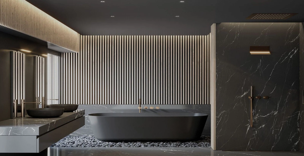 – Bathroom walls with COVERLAM plates (GRESPANIA) 2700X1200 (Color to choose)