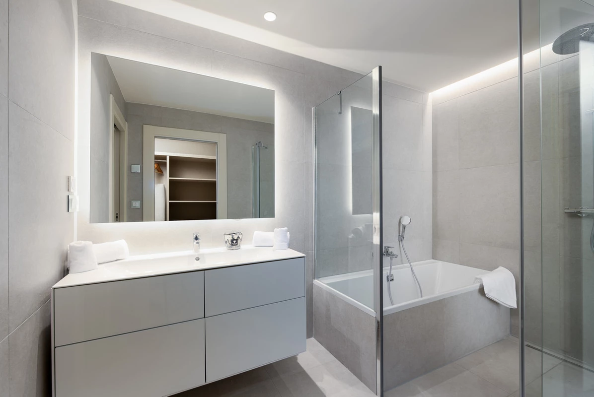 There are three bedrooms, including the principal bedroom suite which enjoys direct access to the private terrace, as well as an ensuite bathroom with separate bath and walk-in shower. There is also a small dressing area. Of the additional two bedrooms, one has an ensuite shower room, the other has access to a family bathroom.