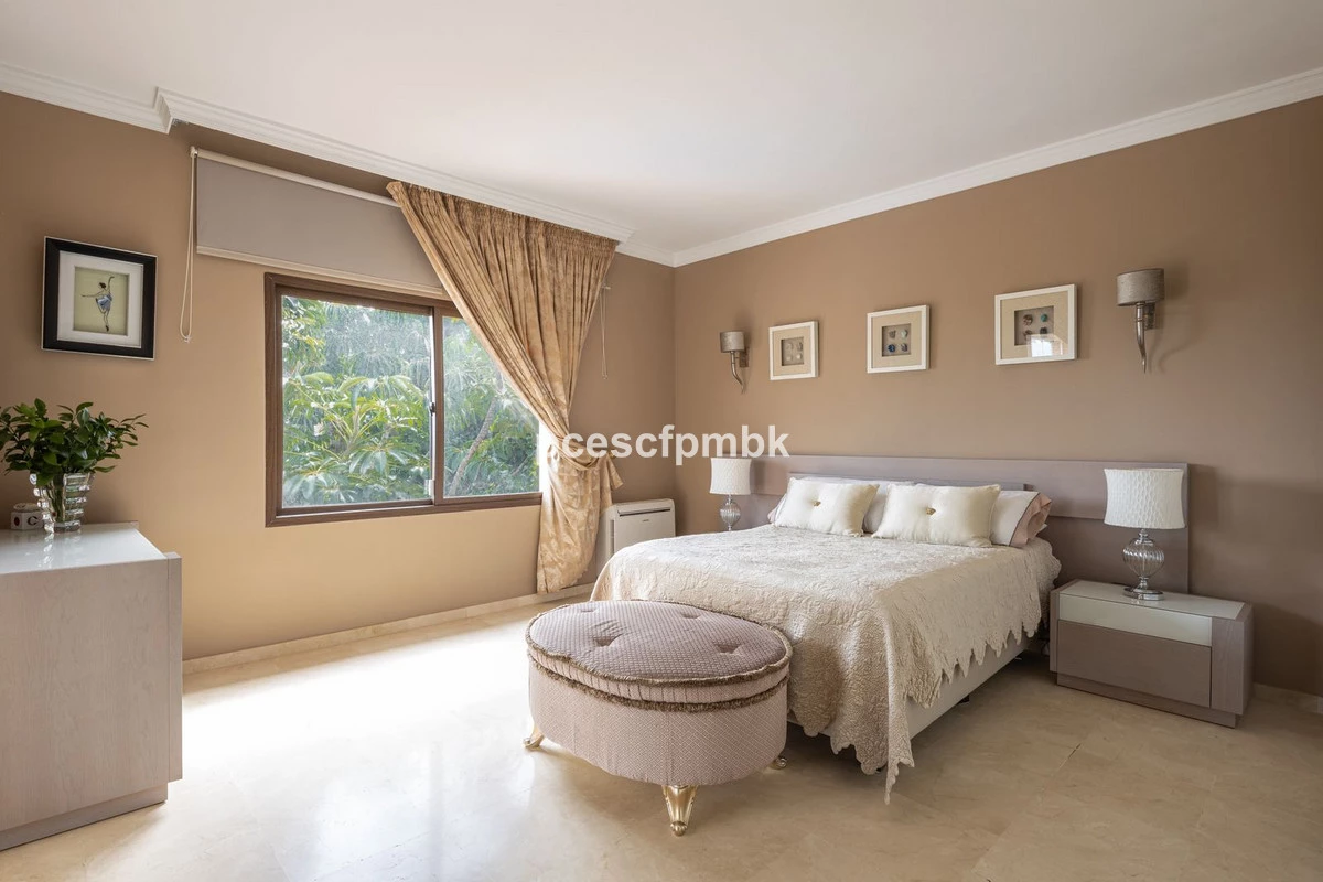 Located in an exclusive and tranquil area, this Mediterranean-style villa with its 2000 sqm garden and orchard ensures a truly Andalucian luxury lifestyle. Thanks to its elevated position, you will have unspoiled views over the golf course towards the mountain and the sea. 4 out of the total 6 bedrooms have en-suite bathrooms, while there are two separate ones as well, making it ideal for renting due to the possibilities of variation.