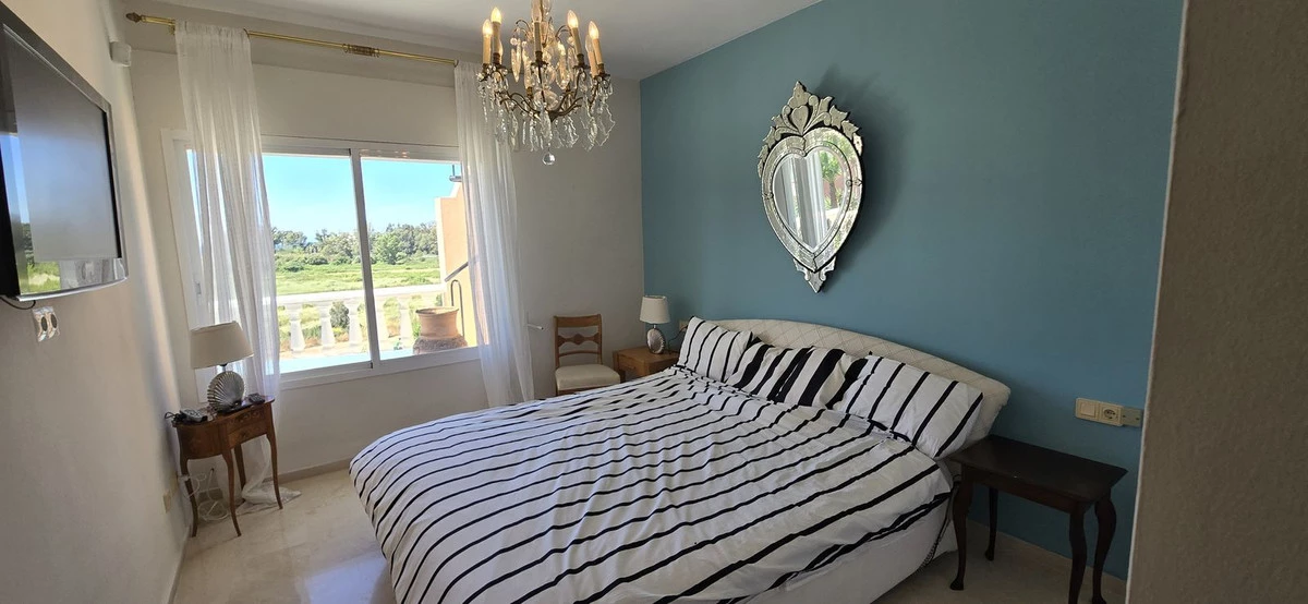 This first-floor duplex penthouse offers beautiful sea views over open fields. It is a top-quality, spacious apartment with marble throughout. An elegant entrance leads to an open lounge and dining area, complete with a fireplace and high ceilings. The living room opens onto a large terrace with stunning sea views.