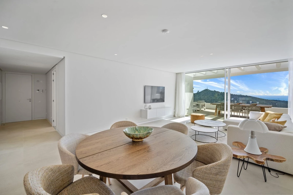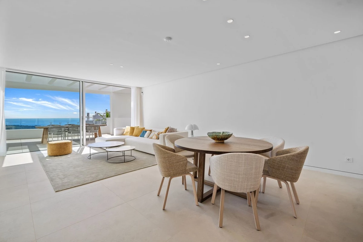Impressive contemporary flat, with sensational sea and mountain views. Las Jacarandas has two private outdoor pools with children's play areas and gardens. Residents also have full access to all the amenities of Palo Alto including, concierge services, a world-class health club, horse riding, spa and beauty facilities, paddle tennis courts, gym, tennis courts, a social club, a kids club, and endless space to enjoy the natural beauty of Sierra de las Nieves.