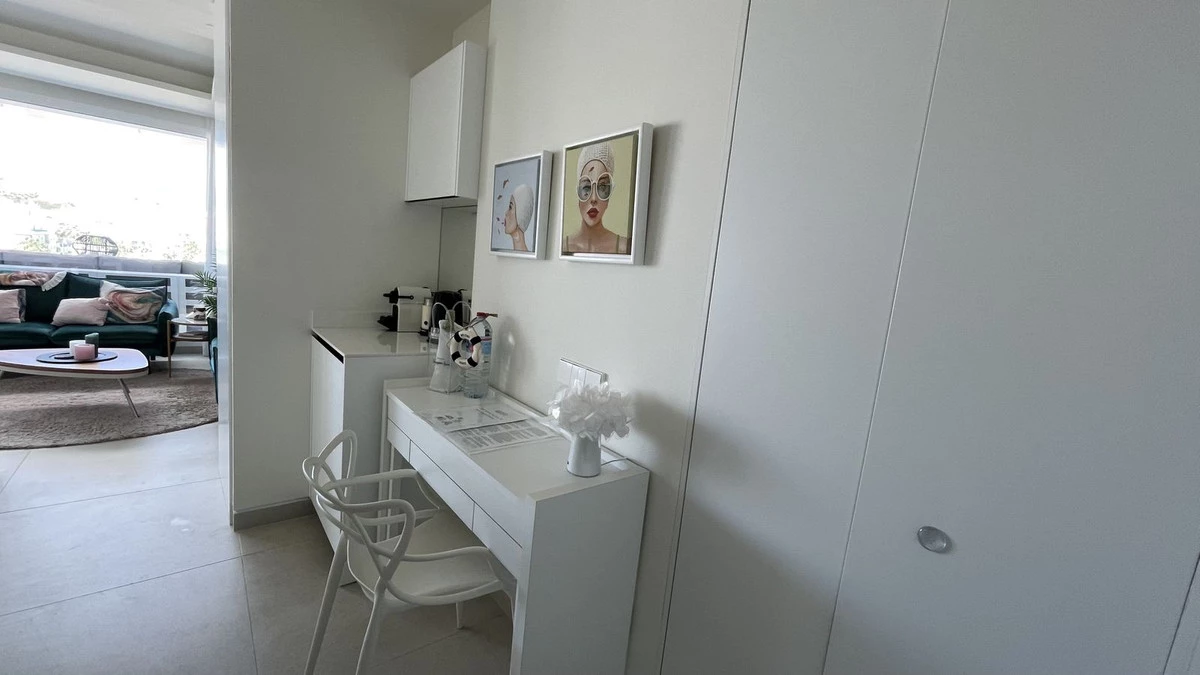 Beautiful top floor apartment on the beachfront, entrance from the new Estepona promenade. Very central, next to all kinds of services and amenities. Panoramic views to the town of Estepona and Sierra Bermeja. It is located in a luxury, inteligent and efficient building, recently build. The apartment has been modified to have two bedrooms instead of one. The modern kitchen is equipped with AEG appliances and includes a hob, oven, microwave, refrigerator, washingmachine and dryer. Large terrace with grill and dishwasher. Aerothermal air conditioning and underfloor heating. The apartment includes a garage space and storage room. The building has a pool on the roof, toilets, Jacuzzi, gym and BBQ. Price including furniture: 625.000€
