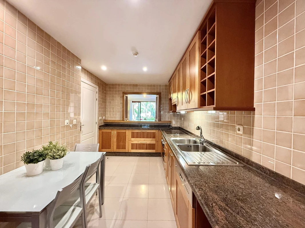 With 3 bedrooms and 2 bathrooms, the flat stands out for its impeccable design and brightness. Its spacious private terrace is perfect for al fresco dining all year round, as well as providing direct access to the swimming pool from the comfort of your home. The kitchen is fully equipped with modern appliances, while the bathrooms have the added convenience of underfloor heating.