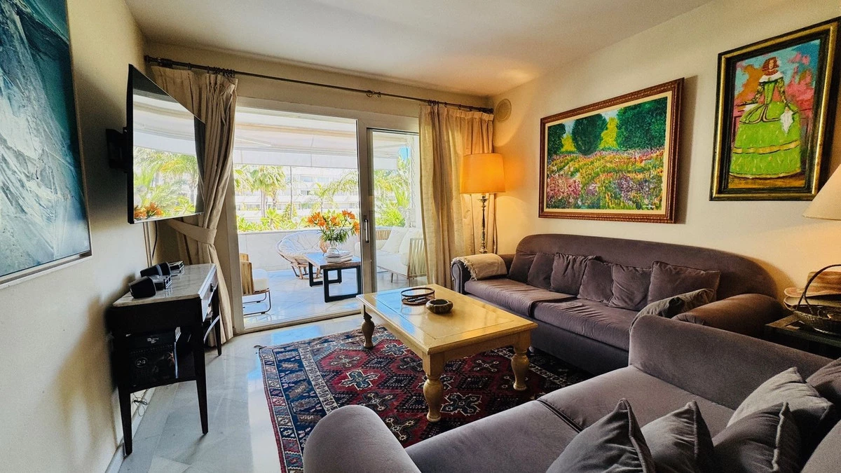 Rare opportunity! Stunning apartment located in one of the most sought after luxury community Los Granados 1 in Puerto Banus, Marbella. The famous residential luxury community enjoys direct access to the promenade of Puerto Banus and the beach,and its multitude of beach restaurants. The community is gated with 24/24 security and boasts a beautiful indoor pool and spa with a fully equipped state of the art gym, a social club with a bar for the residents, as well as a popular restaurant opened from April to October. The residents and their children have access to a games room fitted with ping pong tables, billiard table and kids games for the little ones. A Sauna, Hamman and a jacuzzi are available in the spa area to the residents only. All is presented in a beautiful smart comfortable style and relaxed atmosphere found only in 5 stars luxury Hotels!