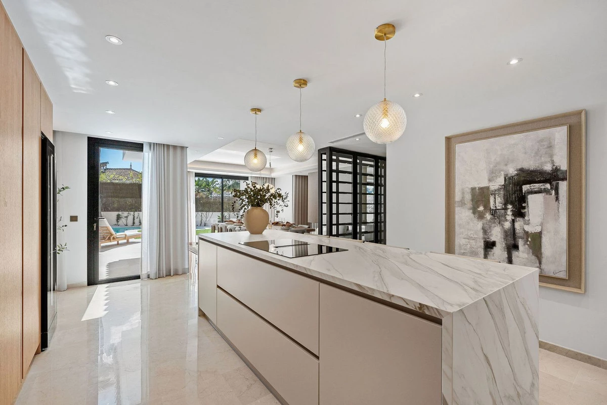 Nestled in the prestigious Atalaya de Río Verde community, this property is an exquisite luxury villa designed for those who seek comfort, privacy, and a prime location. Just minutes from Marbella’s city center and Puerto Banús, this property offers a sophisticated lifestyle in an exclusive setting. With 290 m² of elegance, the villa features five en-suite bedrooms and a guest toilet, complemented by spacious terraces that invite you to soak up the sun and enjoy stunning pool views. Its interior seamlessly blends luxury and functionality, boasting a grand living room with a fireplace, a TV lounge, a refined dining area with a wine cellar, an office, and a fully equipped Bosch kitchen.