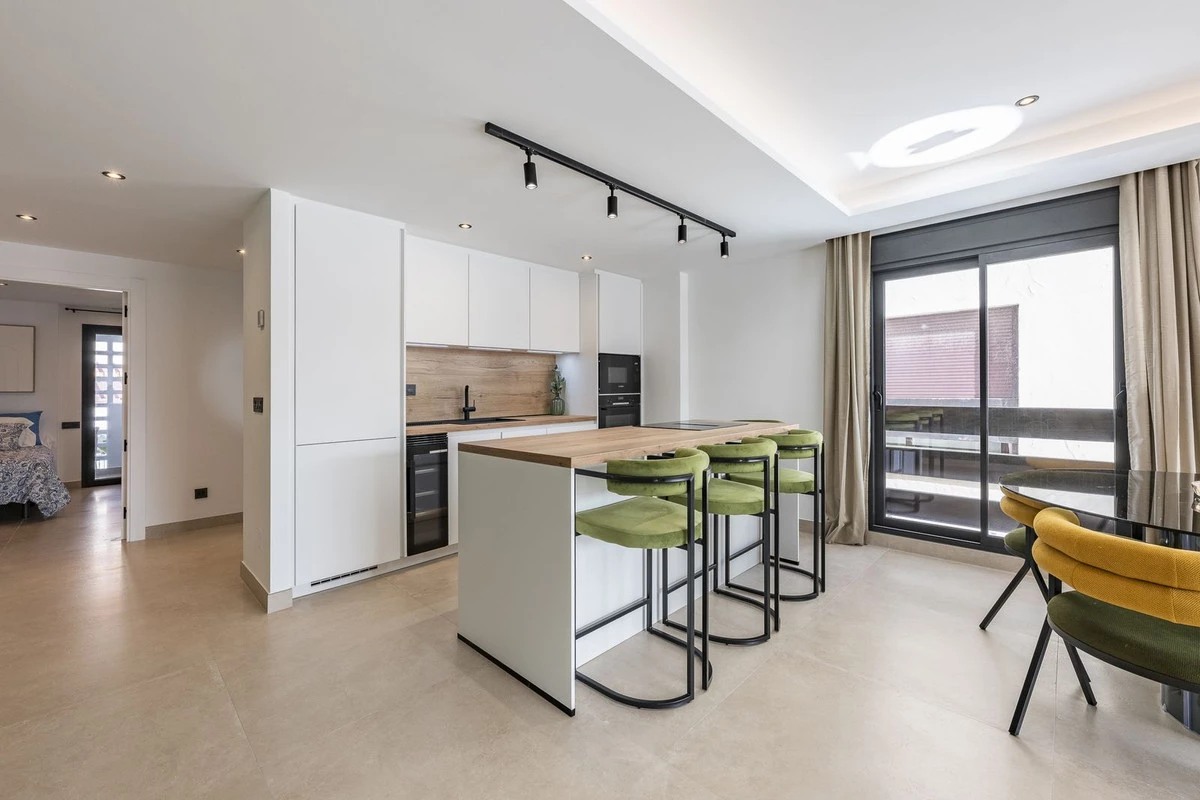 Luxury renovation in Nueva Andalucia. Top quality refurbishment with underfloor heating in the bathrooms and modern fire place. In la Maestranza, a closed development with 24 hours security, very well maintained gardens and green areas with 2 pools (one of them heated). Lovely mountain views with a built in electric BBQ for alfresco dining.The most popular shops and restaurants on your doorstep and only 15 minutes walk to Puerto Banus and the beach. It sold fully furnished so bring your suitcases and move in. Garage space is included in the price.