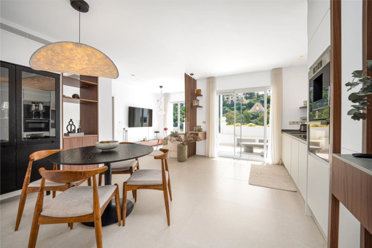 Apartment Oslo is a top-floor residence in La Quinta that offers exceptional views and refined living. The home features two bedrooms and three bathrooms across 110 square meters of space. Every area has been designed for comfort and ease, with an open layout that brings light into every corner. The large south- and east-facing terrace provides a seamless connection between indoor and outdoor living, perfect for relaxing or dining under the stars.