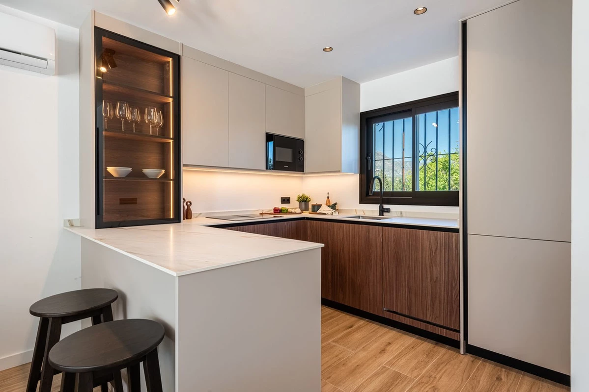 The home features 4 bedrooms, 3 bathrooms, and an additional guest toilet. The open-plan living area flows seamlessly onto a spacious west-facing terrace and garden, ideal for entertaining or relaxing outdoors while enjoying the afternoon sun. An outdoor kitchen enhances the alfresco lifestyle, perfect for enjoying Marbella’s year-round sunshine.