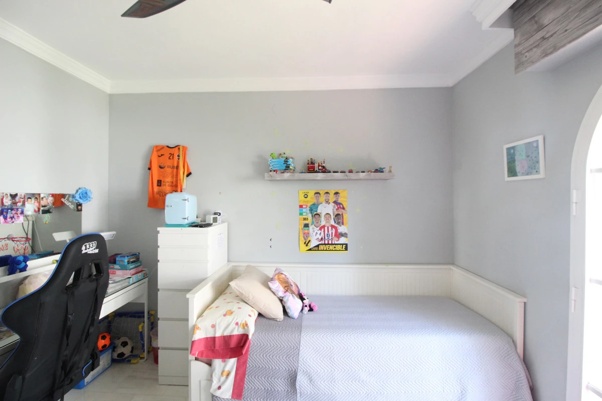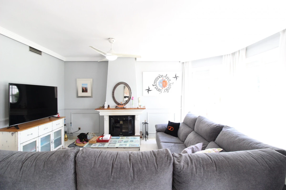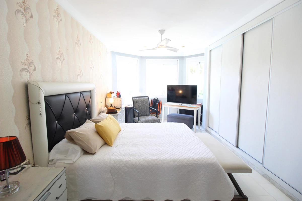 Enjoy the communal garden from the lounge porch! On the first floor are the 3 bedrooms and 2 bathrooms, one of them en suite with shower and large dressing area. New wardrobes in all bedrooms . It is a closed and very well maintained community. The house has several Porches, and huge Solárium with a wooden roof recently put so this new one. Ideal for chill out area and outdoor dinners with barbecue and closed part as well as laundry room. The fantastic panoramic views of the whole wooded area and the mountains of La Quinta. The urbanization is close to everything: Supermarkets, Colleges, Shops, Restaurants etc.. is ideal for Holidays or for families. And perfect to live all year. It has general air conditioning throughout the house and blinds. San Pedro de Alcántara is a 4-minute drive from Puerto Banus. It is for all an ideal house for families and also for investment and enjoy Marnbella with everything next to it;