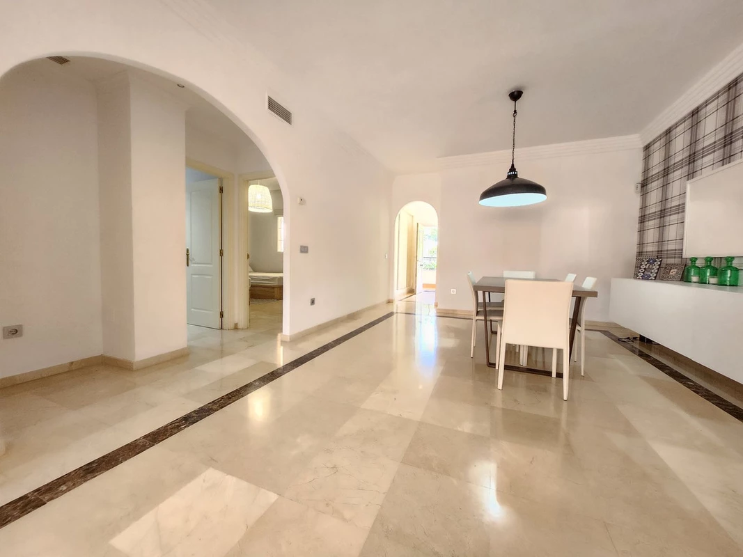 This elegant apartment in residential complex, located in Nueva Andalucía, Marbella, has been fully renovated, offering a modern and sophisticated living space. With 150 m² of built area, the property features two spacious bedrooms and two full bathrooms, designed with contemporary style and high-quality finishes.