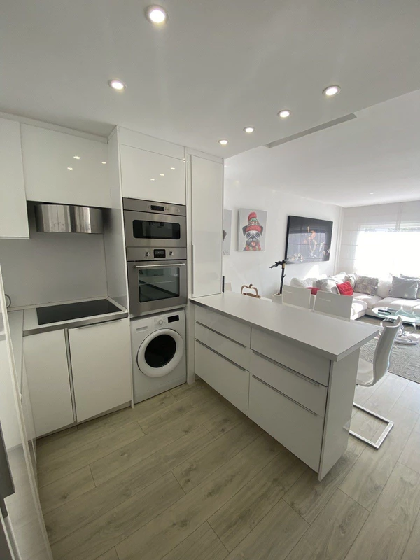 We present a stylish 2.5 Bed/2 Bath Modern Renovated Apartment in Playas Rocío, Puerto Banús (Beachfront Development) for Sale with Private Underground Parking Included in the price! €825,000.