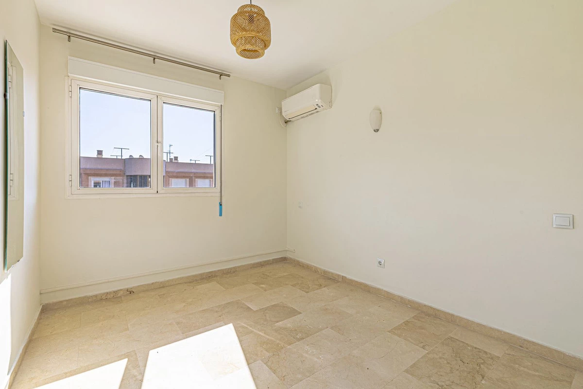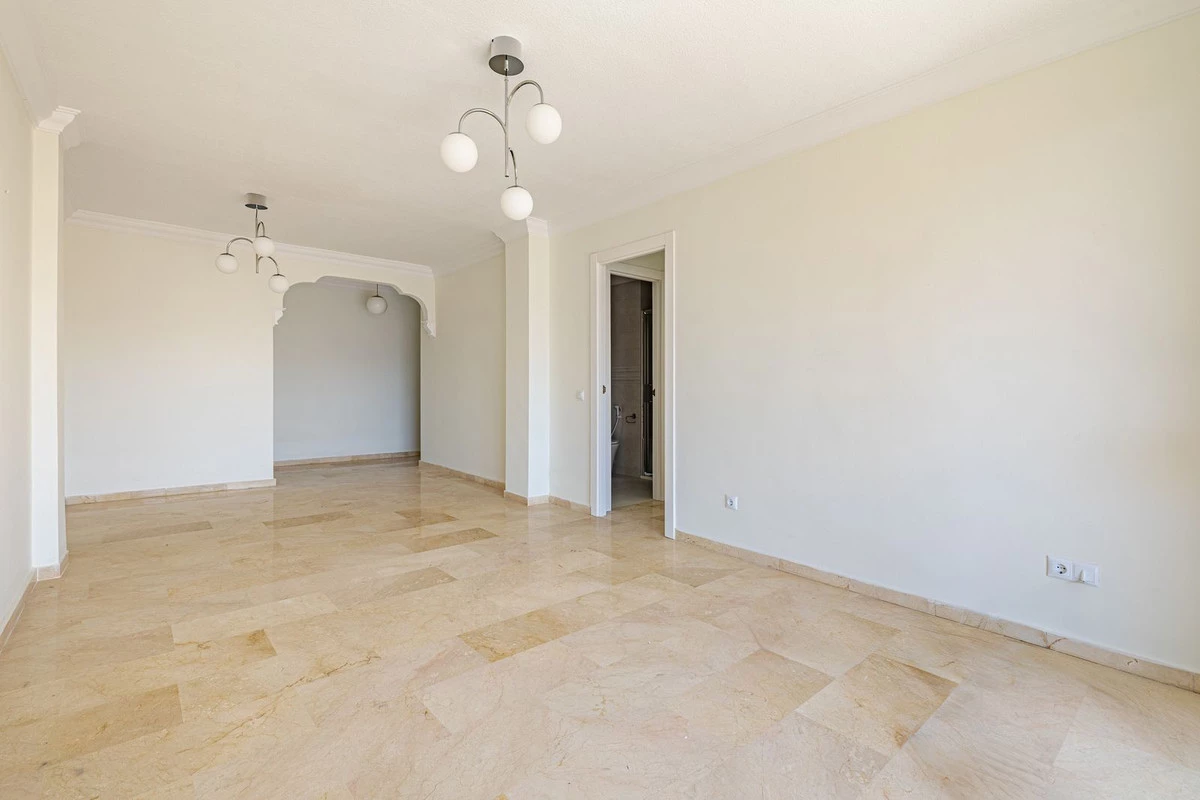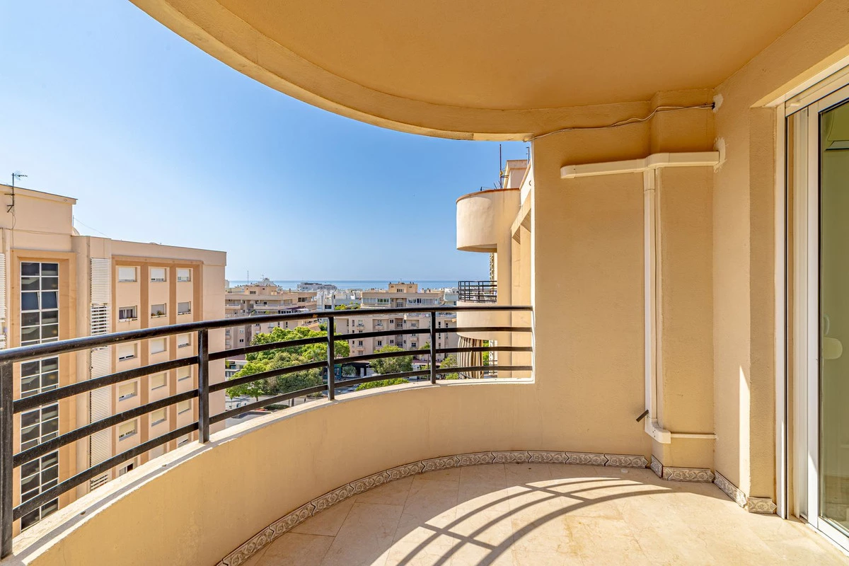 Impeccable top floor apartment in the heart of Marbella, just a 5-minute walk from the beach and the promenade, and next to supermarkets and shops. The property was renovated very recently, and features: a living/dining room with access to the terrace offering beautiful sea views, a master bedroom with en-suite bathroom, two further bedrooms each with their own bathroom, a fully equipped kitchen, and a laundry room. The complex has a swimming pool and garden, and a secure communal car park.