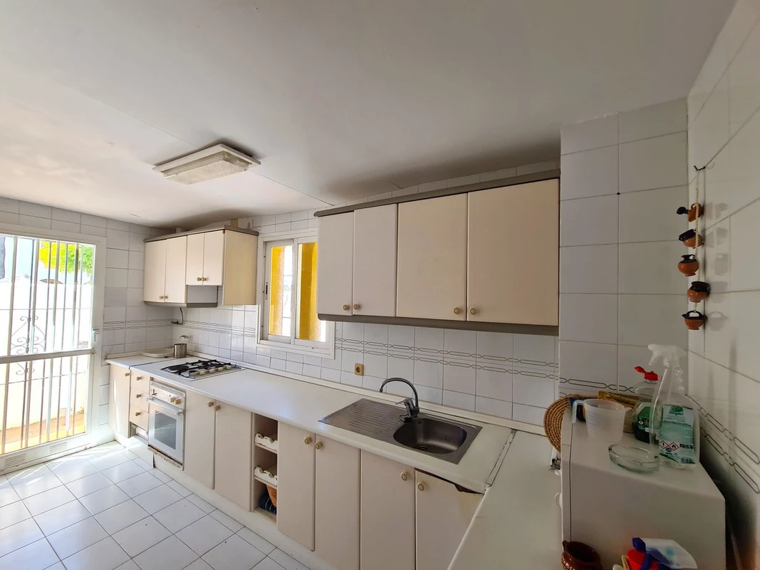 Excellently located in a beachfront development with access to the Coastal Path that connects the entire Costa del Sol, and the beach is just steps away. Close to supermarkets, shops, restaurants, and a wide variety of leisure options, Sabinillas is just a 2-minute drive away and Estepona is 10 minutes away, while Malaga Airport is a 90-minute drive away. The property is spread over two floors plus the solarium. On the ground floor, we find the main entrance with a spacious hall, a toilet with a window, a large kitchen with access to the rear terrace, and a large living-dining room with a fireplace and access to a porch that connects to the large private garden. The first floor houses the house's three bedrooms, each with its own private terrace and built-in wardrobes. It also has a spacious full bathroom equipped with a bathtub and a large window. The master bedroom has an en-suite bathroom equipped with a bathtub and a large window, as well as a beautiful private covered terrace. On the upper floor, we have a turret, a storage room, and a large solarium with views of the sea, gardens, and the pool. This well-maintained complex offers swimming pools, gardens, and beach access. A GREAT OPPORTUNITY TO EXPERIENCE THE LUXURY OF HAVING YOUR OWN HOME JUST STEPS FROM THE SEA!