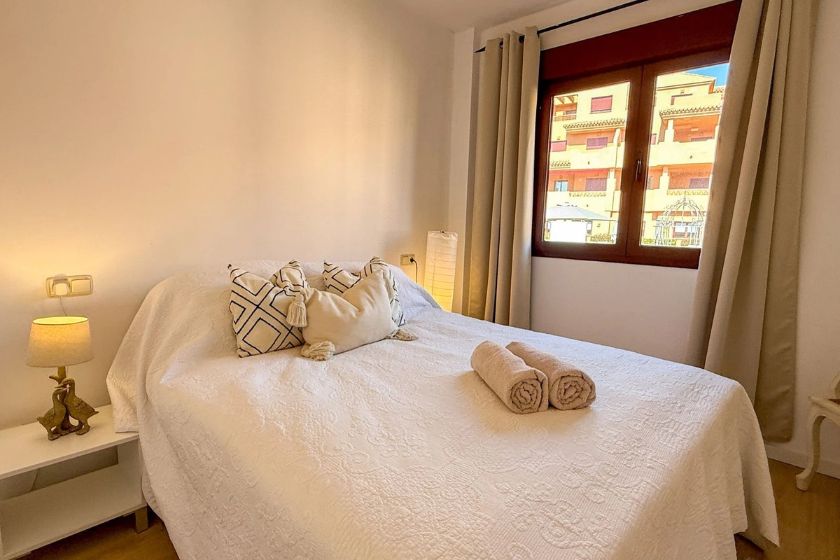 The property is fully furnished and move-in ready, offering one bedroom and one bathroom with a practical layout. The highlight is the south-facing terrace, where you can relax and take in the open views over the golf course, along with small sea views and the backdrop of La Concha mountain.