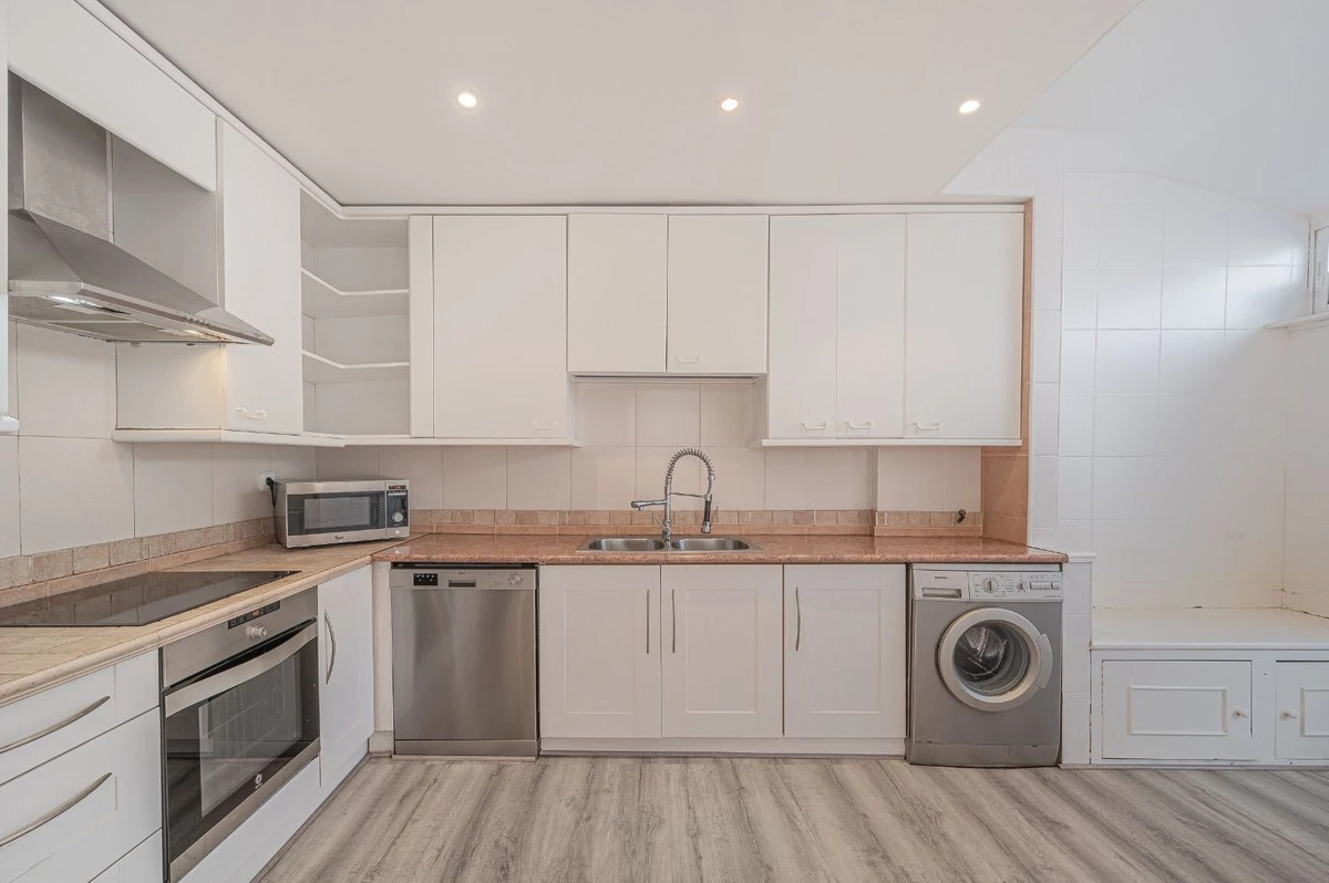 Main Level: A bright and spacious lounge with dining area, a fully fitted separate kitchen, guest lavatory, and a private terrace.