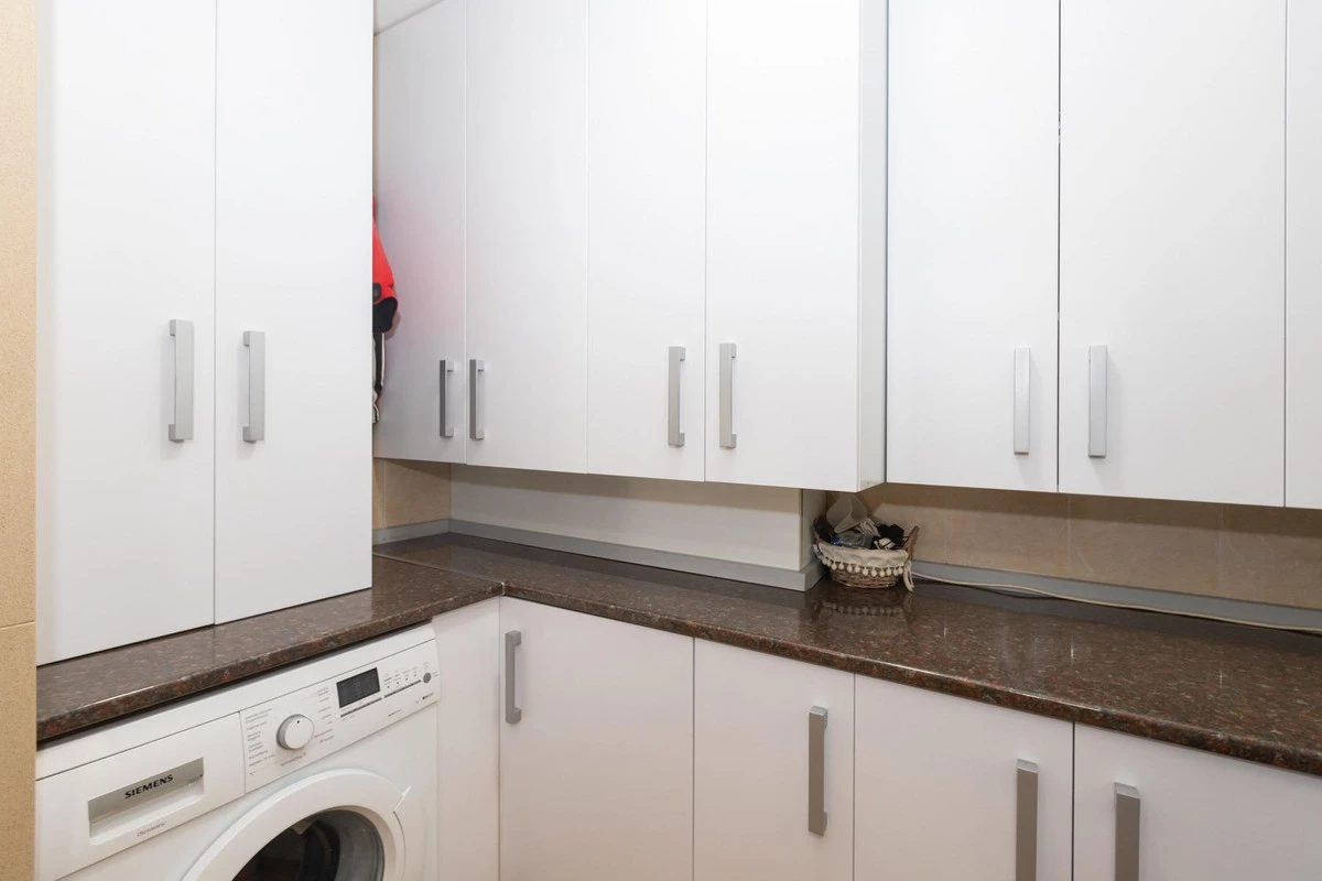 The kitchen is a true paradise for cooking enthusiasts, equipped with state-of-the-art appliances and a practical separate laundry area. The bathrooms have also been recently refurbished: one boasts a sleek contemporary shower, while the other offers a relaxing bathtub.