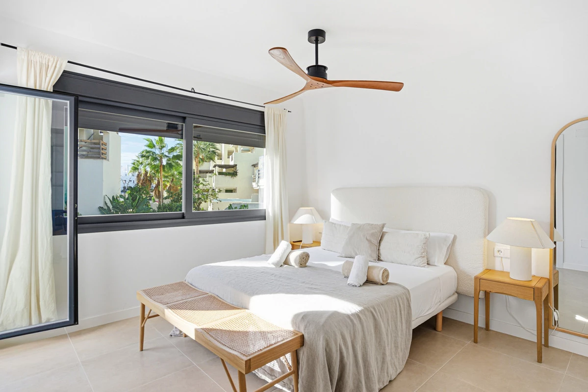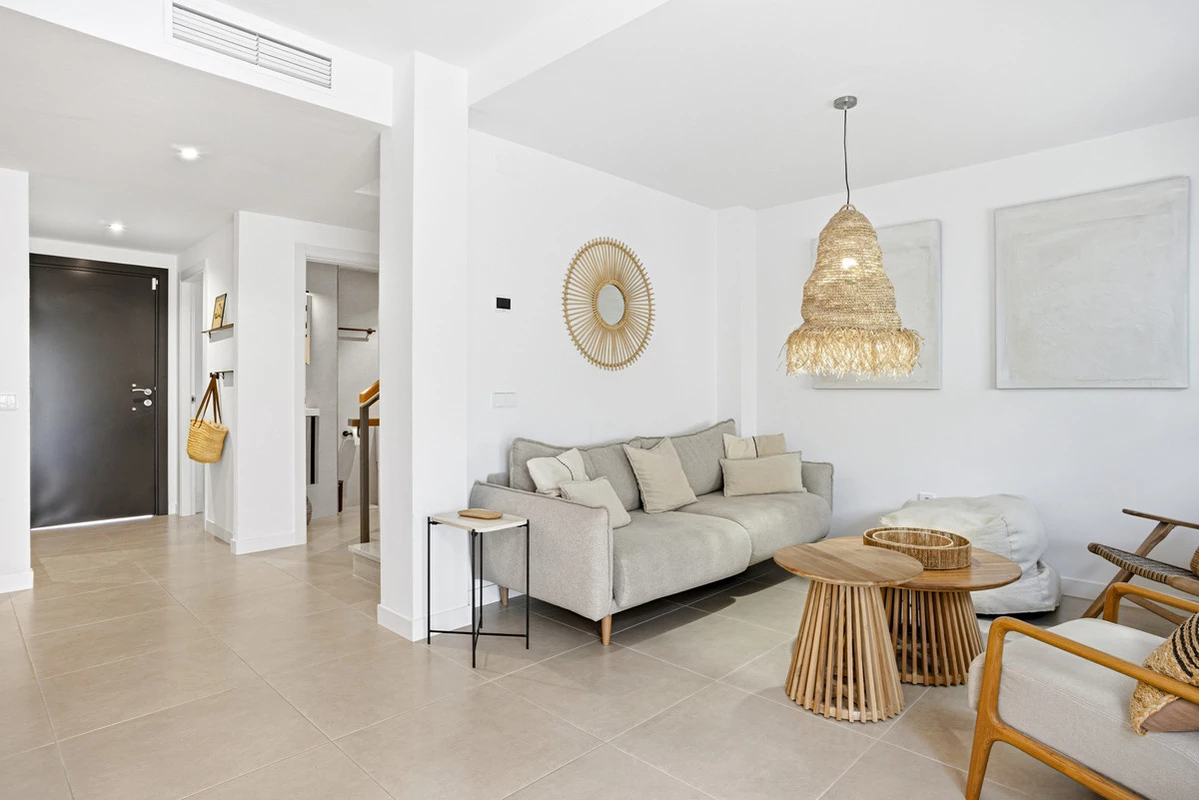 Elegant, three bedroom townhouse located in the gated commnity of Agra Residencial, a charming Mediterranean-style complex of 47 spacious homes situated beside El Campanario Golf & Country Club, in the heart of Estepona’s prestigious Golden Triangle. Ready to move in, this property showcases bright, open interiors with quality finishes, including ceramic flooring, fitted wardrobes, modern bathrooms with glass shower screens, and a fully furnished kitchen. Designed for comfortable living, it features generous terraces, a private solarium, and a private pool—perfect for enjoying the Costa del Sol lifestyle. Additional highlights include hot and cold air conditioning, two underground parking spaces, and access to beautifully landscaped communal gardens and a swimming pool within this secure, gated community.