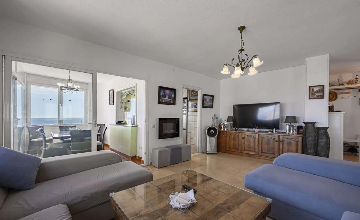 Where the Mediterranean becomes a way of life.Facing the infinite horizon, this residence redefines the art of living by the sea.It is not just a privileged location, but an aesthetic and emotional experience where light, space and silence interact in absolute harmony.Each room has been designed to frame the landscape: two bedrooms and two bathrooms that combine elegance and functionality, with a master suite that invites you to wake up surrounded by the sound of the sea. The bathrooms, spacious and sophisticated, evoke the well-being of a private spa.The spacious, open-plan living room connects effortlessly to a private terrace where time seems to stand still. There, having breakfast in front of the waves or sharing a drink at sunset becomes a daily ritual of beauty and calm.The separate, contemporary-style kitchen offers an almost cinematic view of the sea. Cooking here is not a chore, but an act of inspiration.The interior is bathed in natural light from dawn to dusk. The large windows create a perfect continuity between the interior and exterior, making the Mediterranean not just a view, but a constant presence.Located in an exclusive residential complex, the property offers tropical gardens, a swimming pool, 24-hour security and direct access to the marina, a privilege reserved for the few, where luxury meets nautical life and the vibrant atmosphere of the seafront promenade.More than a view
